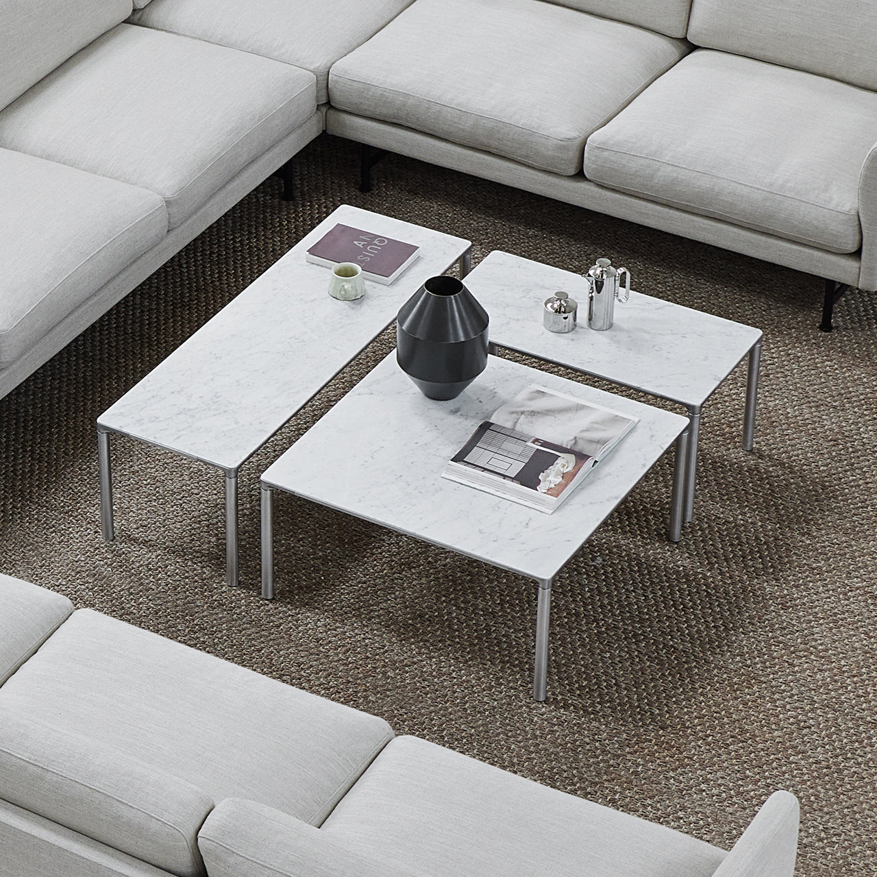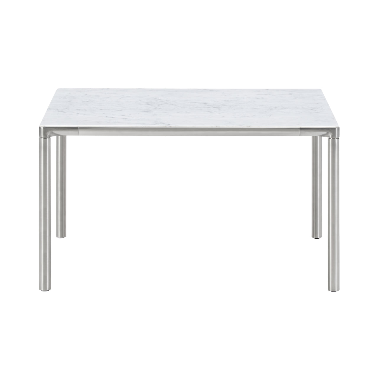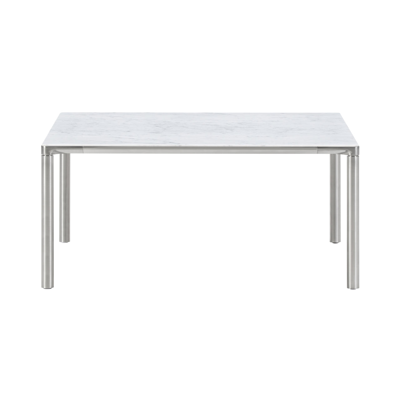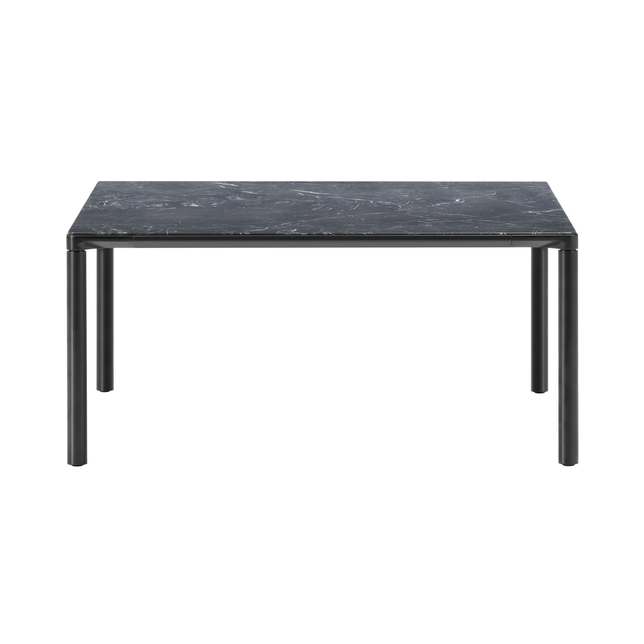 Supported by a durable aluminum frame, the square Piloti Alu Table is designed for settings that value long-lasting materials and efficient use of space. Available in two heights, it fits a range of layouts from private rooms to shared environments. The tabletop comes in black Fenix laminate or natural stone, offering distinct surface options to suit different uses. The design reflects a focus on utility and straightforward construction.