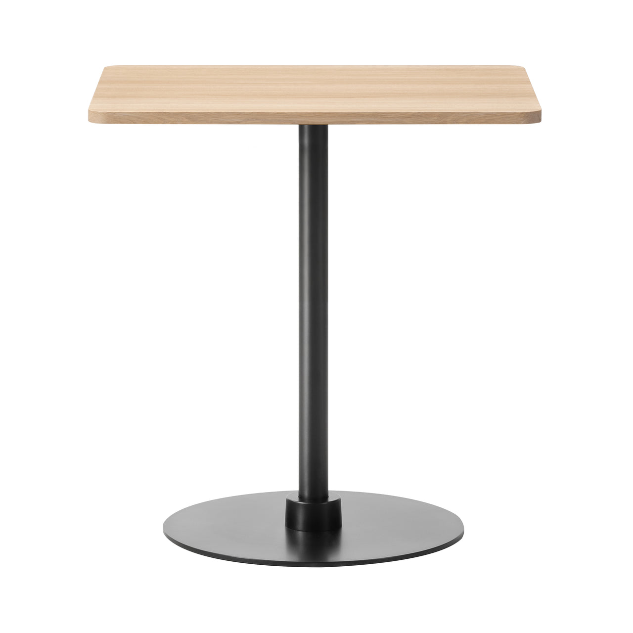 Crafted for smaller footprints, this square table rests on a sturdy base made from powder-coated steel and aluminum. The tabletop is available in a variety of materials, including solid wood, laminate, and marble, offering tactile and visual contrast. The design is available in four height options to accommodate different environments, from casual dining to standing workspaces. Built with disassemblable parts, the table supports long-term use through easy repair and recycling. Its clear structure and adaptable form make it well-suited for cafés, dining settings, or collaborative areas.