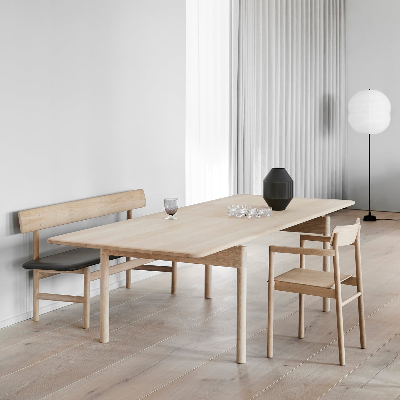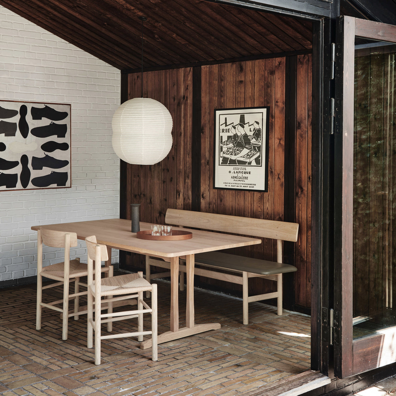 A Midcentury impresario of Danish Modern, Børge Mogensen created his namesake wood bench in 1956 and it endures as a testament to the designer's lifelong drive for a clean, essential shape. With its impression of robust simplicity, the seating features construction in solid oak, notably including the back which is made from a single piece of timber. With an extensive range of leather and fine fabric upholstery options, the seat is made of plywood core and layered with high resiliency foam.