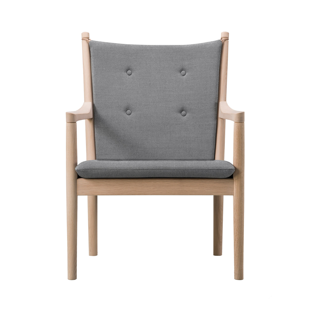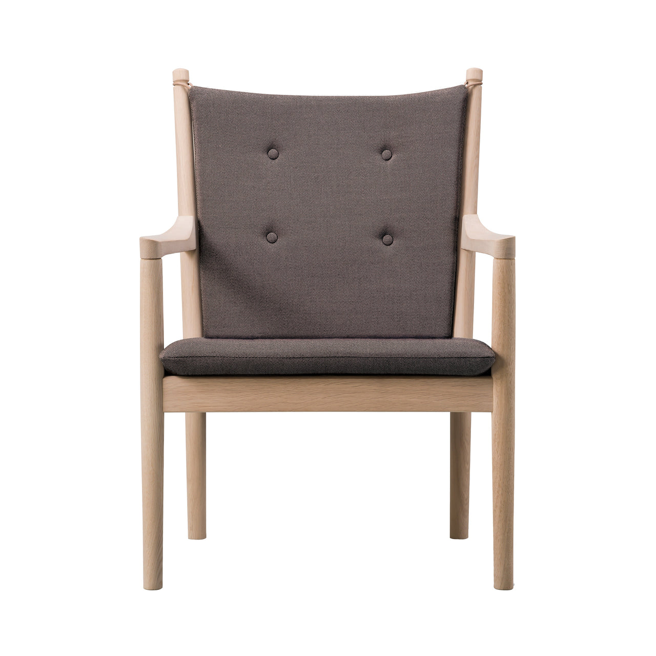 Midcentury designer eminence Hans J. Wegner devised 1788 Easy Chair as a counterpart to his Spoke-Back Sofa, both debuting in 1974. At once visually elegant and extremely comfortable, it features replaceable cushions upholstered in a custom choice of fine fabric or soft leather with the backrest attached with leather straps. Fashioned in solid oak, the armchair comes in oiled and soaped finishes as well as natural or black lacquer.