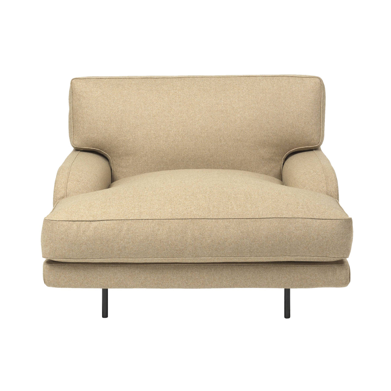 Designers Stine Gam and Enrico Fratesi recast their modernist take on a classic roll-arm English sofa as a capacious lounge chair. For their series for Italian maker Gubi, the seating features low-slung, expansive proportions and a softly rounded character, set on sleek metal legs. Yet it retains a crisp silhouette, emphasized by taut upholstery and precise piped edges. A slender wooden frame underpins the layers of springs, foam and feathers to assure extended comfort and ease. And the snugly plump seat and backrest cushions are thoughtfully equipped with removable covers for easy maintenance.