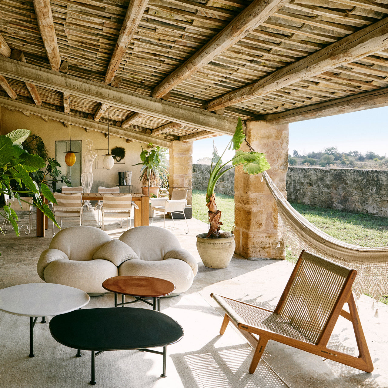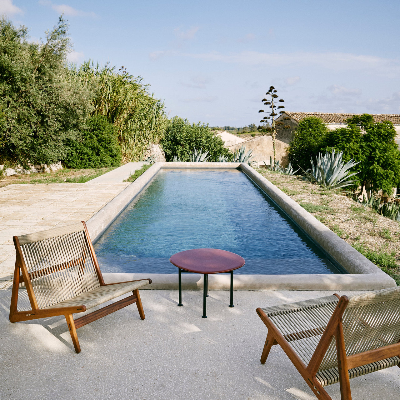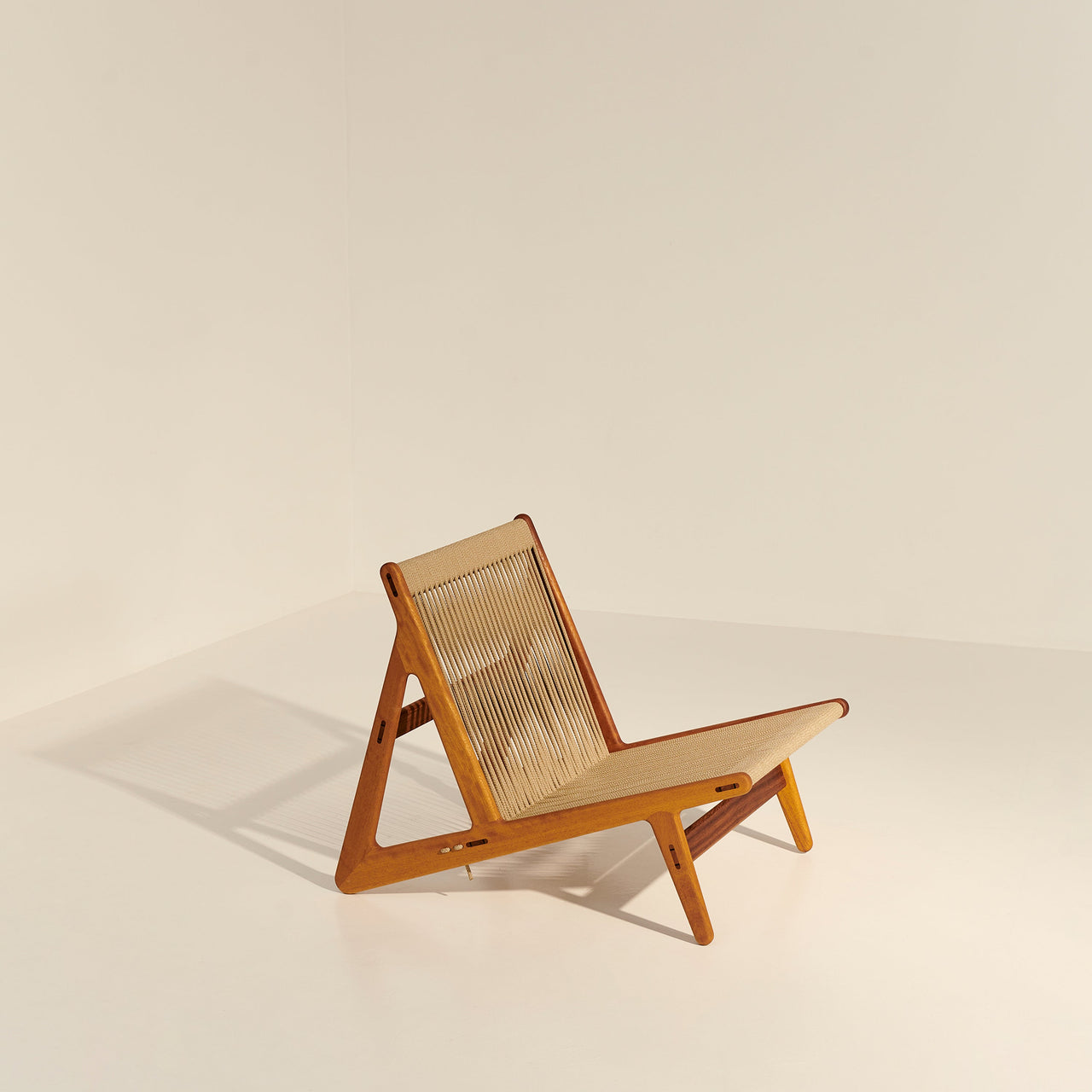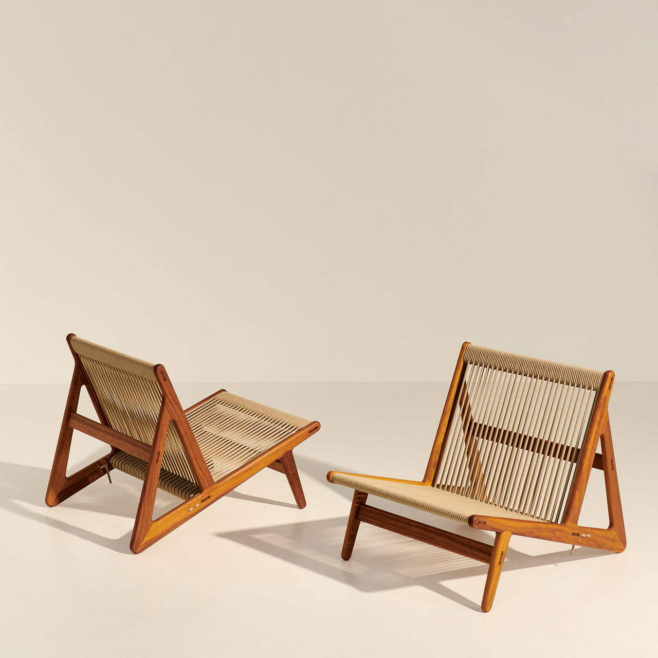 With its low-slung wooden frame and nautically evocative rope seat and backrest, Mathias Steen Rasmussen’s evocative MR01 Initial Lounge Chair seems a natural to be taken outside. Structured in FSC-certified iroko wood—like the indoor edition, without the use of screws—it sports custom-made high-performance polyester rope seating that’s waterproof, UV-resistant and woven with an anti-deformation core that prevents any stretching over time.