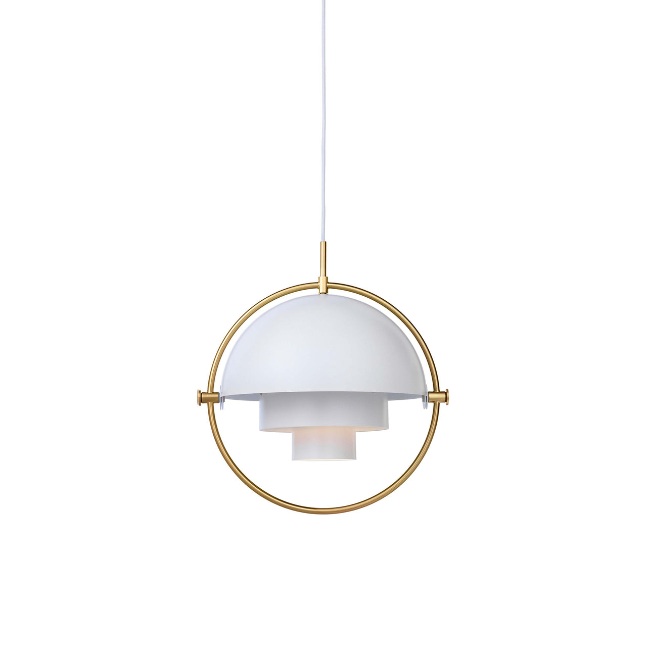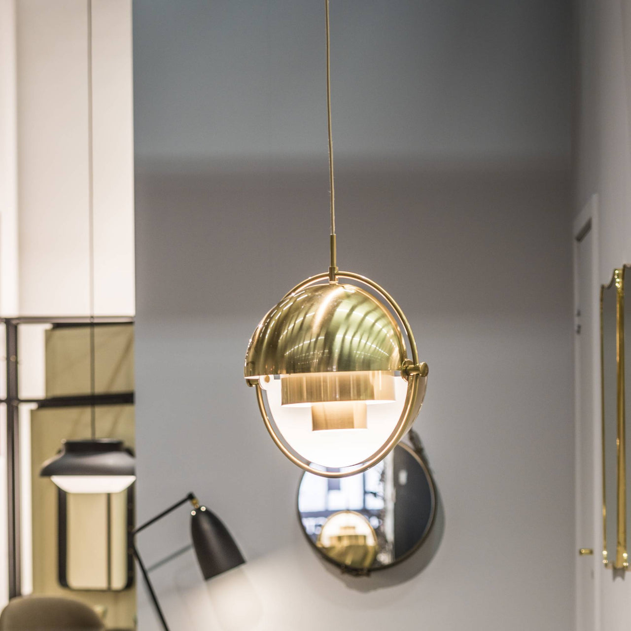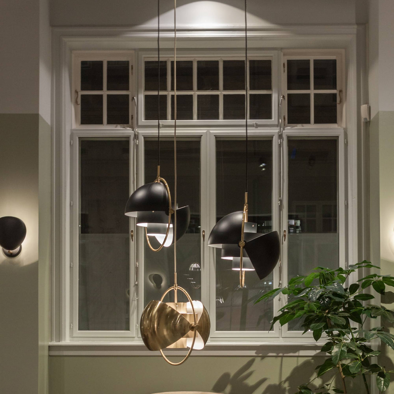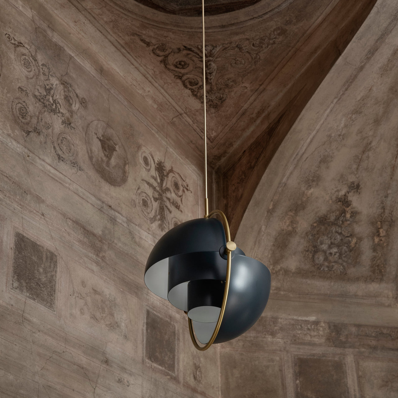 Gubi’s small Multi-Lite Pendant offers a scaled-down version of Louis Weisdorf’s memorable 1972 design. Held within a suspended brass ring, the 2 individually rotating shades allow the light to be directed upwards, downwards or as an asymmetrical art light. At the same time, the eye is shielded from any glare. First introduced in the fabled era of Nordic style, Multi-Lite remains timelessly functional.