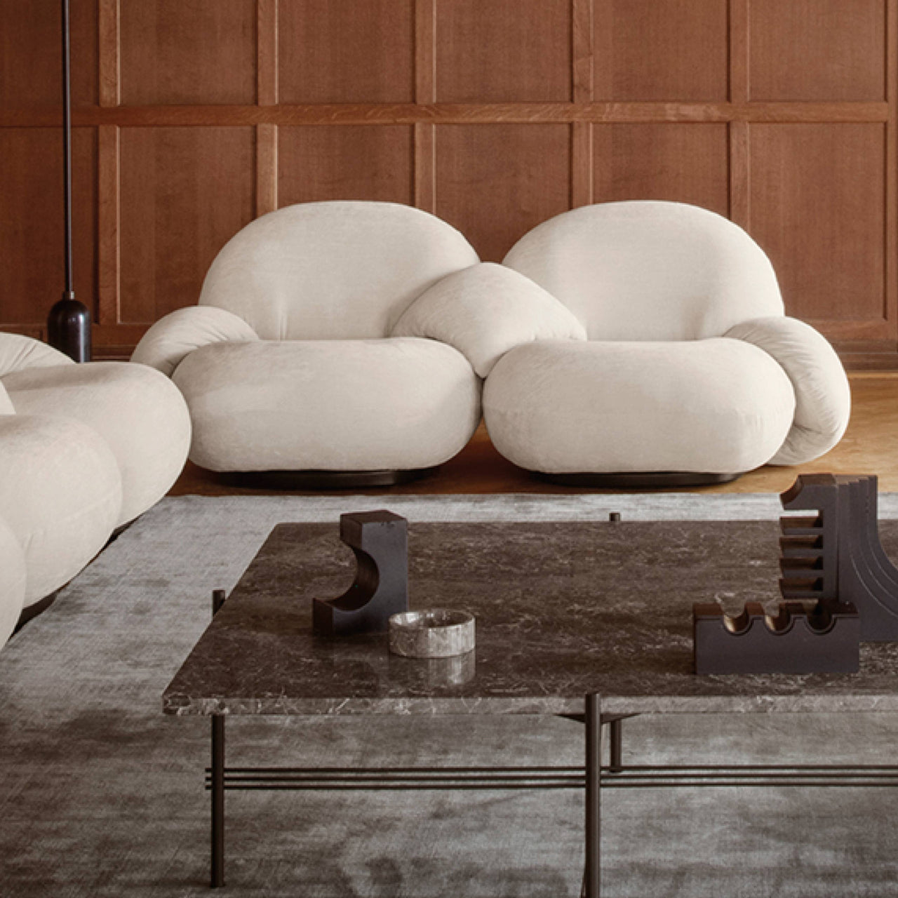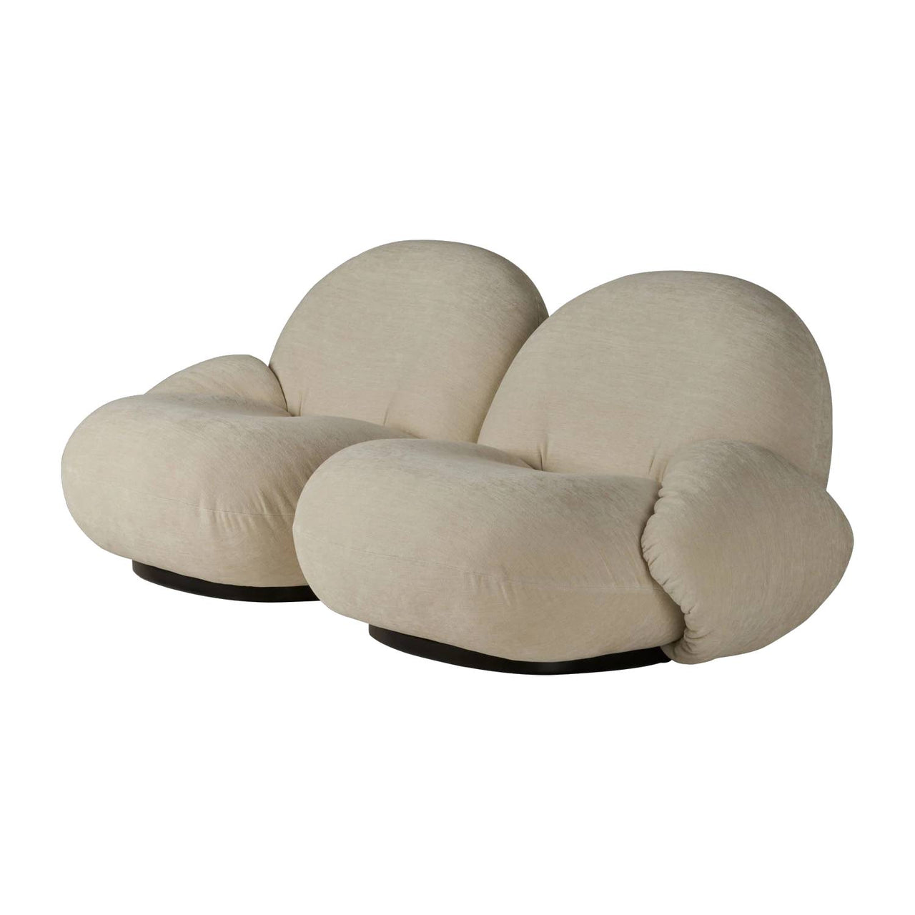 Pierre Paulin’s 1975 vision of sitting on a cloud formation is enhanced with armrests on the sides and middle providing even more support and allowing one to lean with ease. Now reissued by Gubi, Pacha’s 2 Seater reveals the French designer’s obsession for ergonomic precision and exacting craftsmanship behind the sofa’s hyper-relaxed contours. A choice of black or pearl gold base and a wealth of upholstery options combine to offer a completely customizable version of this now iconic seating.