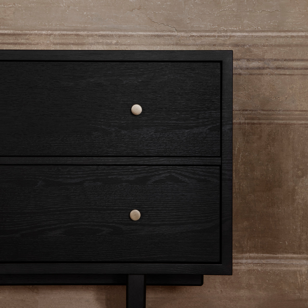 Private collection's adaptability lies in its purity of form and this standout sideboard offers essential concealed storage in the living room, dining room or bedroom. Designed to sit neatly against a wall or back-to-back with another unit, it features 4 soft-close drawers while the top can be used as an elegant surface for lamps, objets or artworks. Refined craftsmanship drawing from vintage Japanese pieces includes characteristic joinery and grain-matched oak veneers, in a light or dark black-brown stained finish.