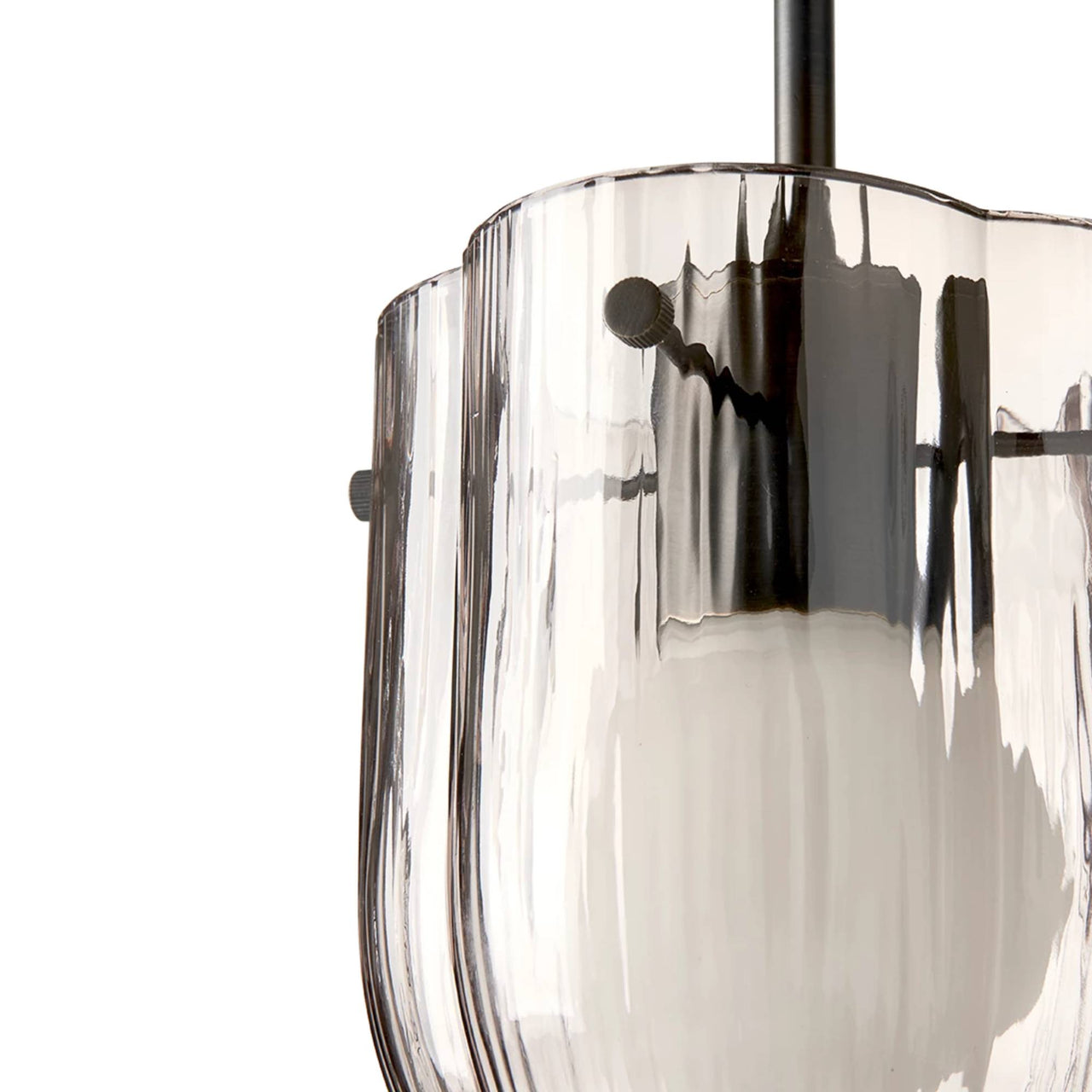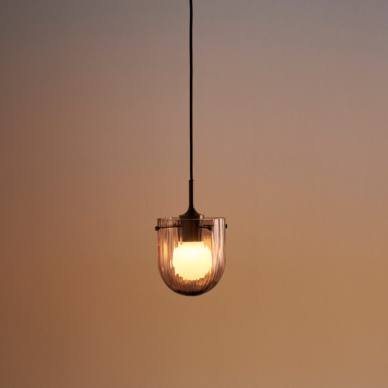 Inspired by a vision of light dancing on moving water, Space Copenhagen creates a pendant in mouth-blown glass that softens and blurs the illumination for a dreamily reflective ambiance. Formed in a geometric, clover-like shape, Seine’s shade is made by blowing the molten material into a mold which shapes it with a distinctive grooved pattern, for a tactility and character that resonates whether the light is switched on or off. Choose from the smoke version, a lightly tinted translucent glass which reveals the inner structure of the lamp or coral, with the interior of the shade sand-blasted to create a clouded effect.