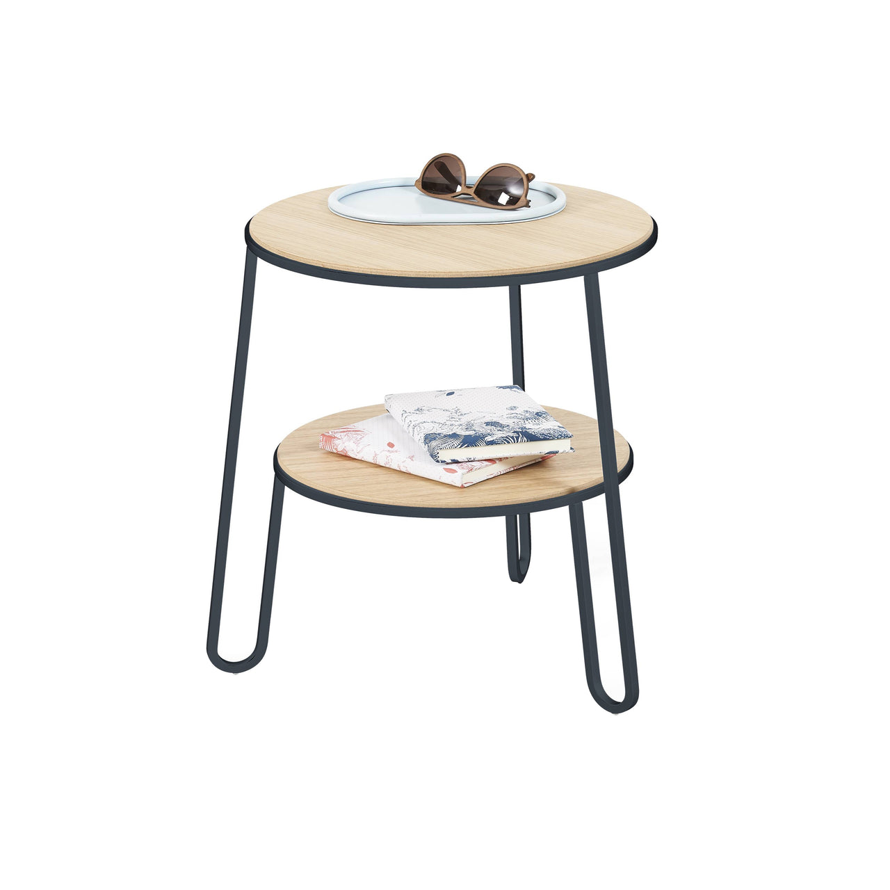 Anatole scales down Studio AC/AL's double-surface concept as a versatile side table. Paris designers Amandine Chhor and Aïssa Logerotis chose an airy metal framework to situate a tabletop and matching round shelf below in a choice of warm oak veneer, luxurious white marble or an allover blue-grey version. As decorative as it is useful, it functions as an occasional table when paired with seating or as a stand-alone piece to hold a houseplant or display an objet.