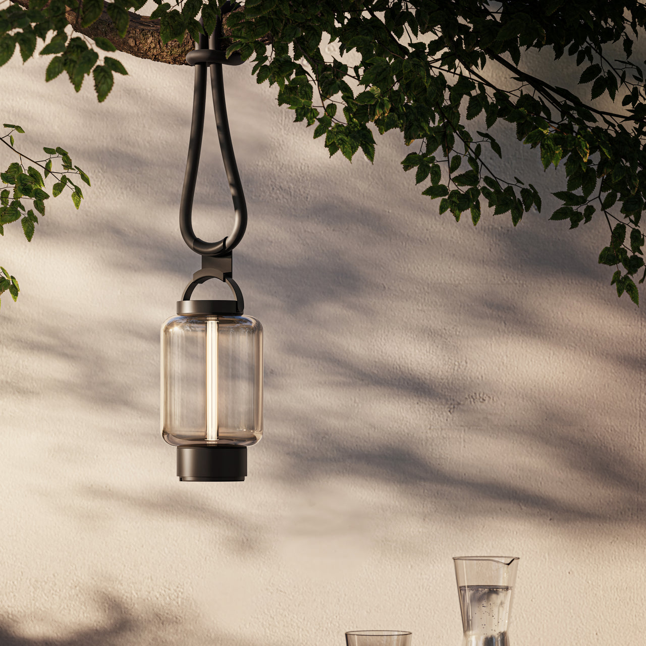 The Qu Hanging Light features a rechargeable lithium-ion battery, offering up to 20 hours of operation at the lowest brightness level. The integrated 3-step touch dimmer lets you adjust the lighting intensity, creating a soft, warm glow (2700K) ideal for atmospheric lighting both indoors and outdoors. Crafted from lacquered aluminum with tinted glass, it also carries an IP44 rating, ensuring it withstands outdoor conditions.