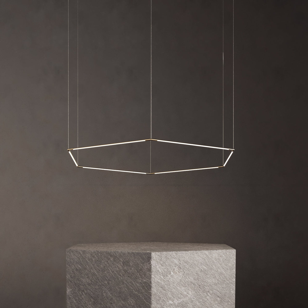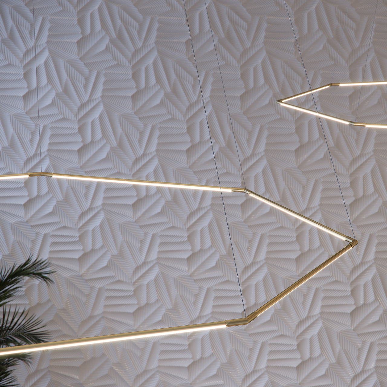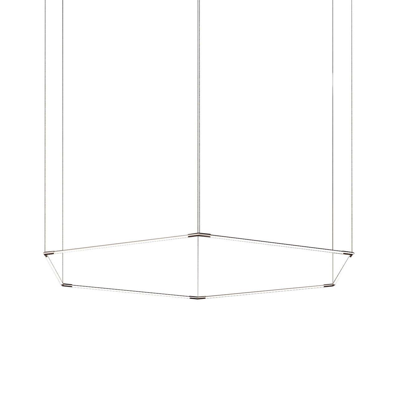 This geometric shape is a stunning variation on Peter Butler’s signature Thin Primaries lighting system for Juniper Design. Available in either suspended or wall-mounted options, it creates a mesmerizing silhouette while still providing functional lighting for commercial, residential or hospitality settings. Individual fixtures can be clustered, expanded or interlocked to easily create custom installations with its fully rotatable light segments and magnetically connecting ends.