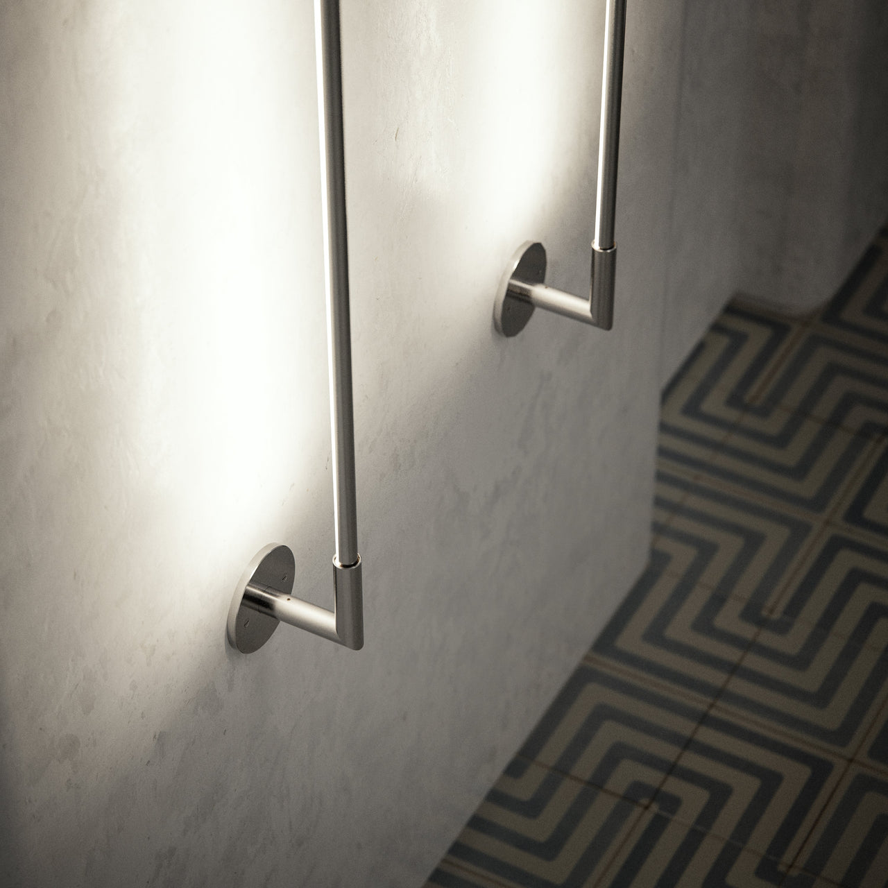 Pared down to a single line, Float is a sleek sconce featuring Thin's signature 1/2-inch LED light, mounted on L-shaped bracket and casting a soft glow. Precision-machined in a selection of finishes and hand-assembled in Juniper's Connecticut facility, the solid-brass fixture comes in a choice of lengths to suit residential, hospitality and commercial settings. Whether deployed singly or in a series, this wall-mounted version shows the elegant utility of designer Peter Bristol's original ultra-slim lighting concept.