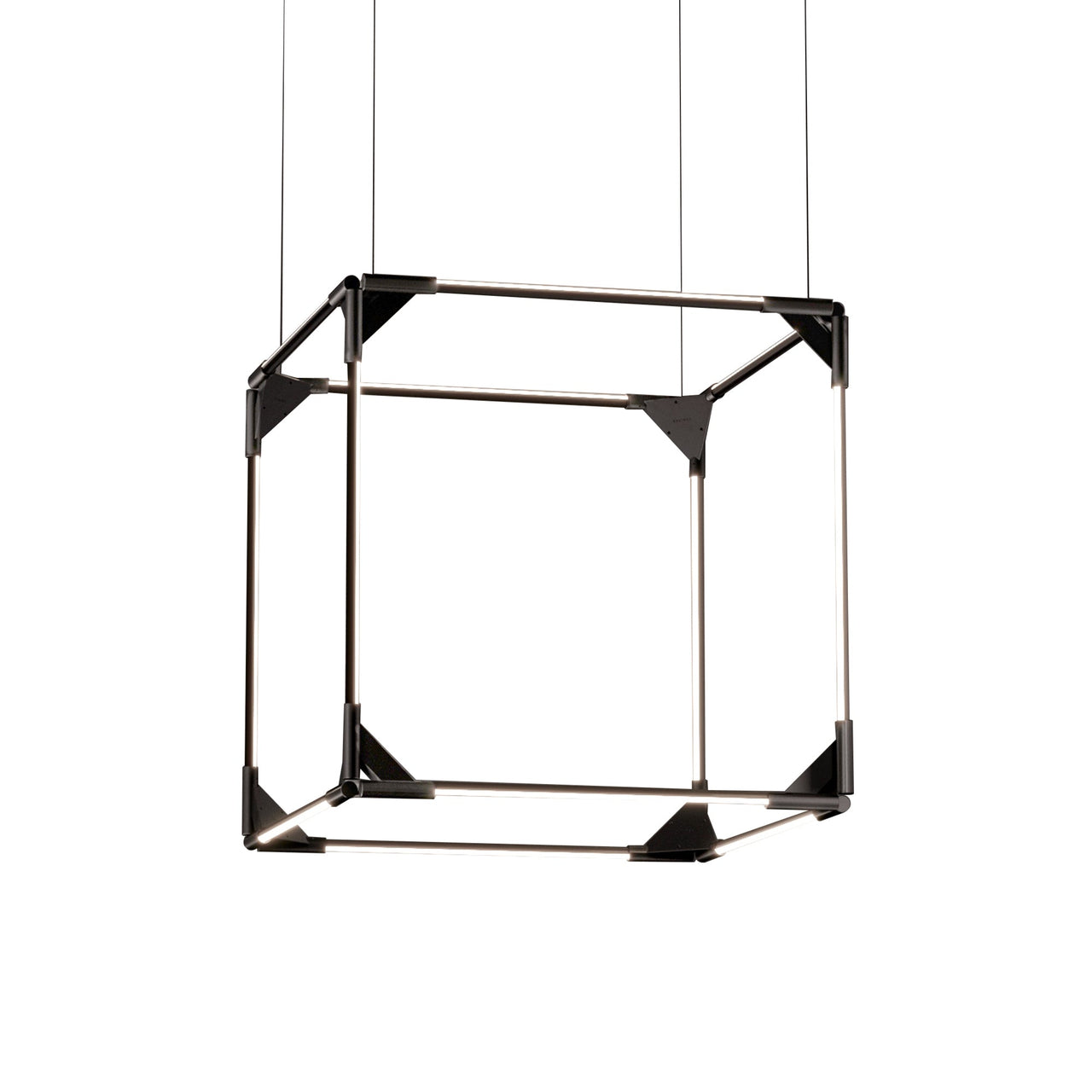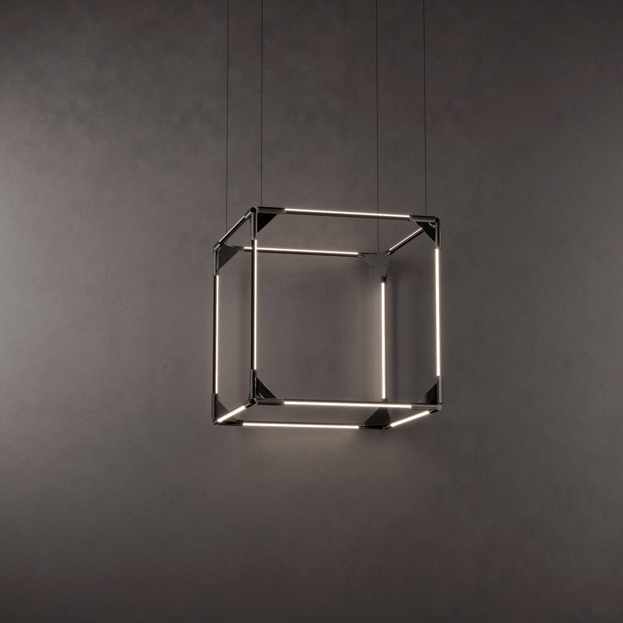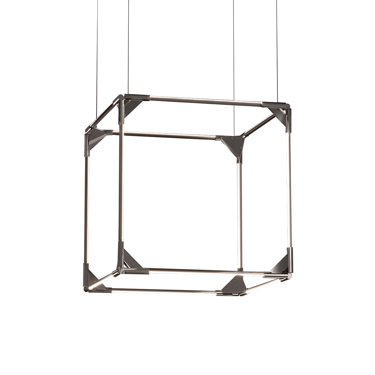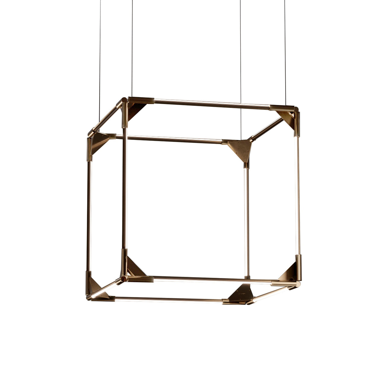 Designer Peter Bristol’s seemingly infinite range of Thin variations for Juniper includes the perfectly symmetrical Solids Cube with squared-off illuminated edges. Available in 3 sizes, the light features 1/2-inch LED segments precision-machined from solid brass in a range of finish options. Magnetic connections in corner pieces allow for the segments to rotate inward for a concentrated light source, or outward for an ambient glow.