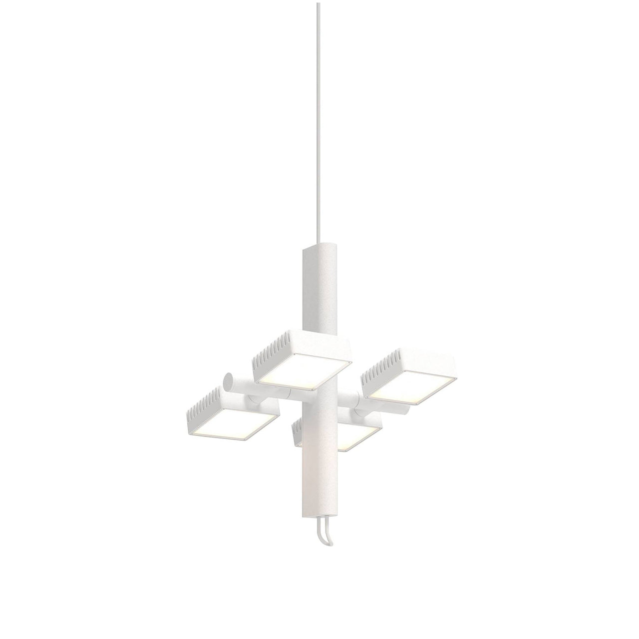 Inspired by both French mopeds and airport runway lights, Dorval 01 features 4 square LEDs balanced atop a cross-shaped aluminum frame. Designed by French studio SCMP, this original industrial-edged pendant features a pivoting-head concept that gave way to an expanded Lambert & Fils lighting series. Available in powder-coated or polished aluminum and with a range of lighting specifications, Dorval is handmade at the brand’s Montreal atelier.