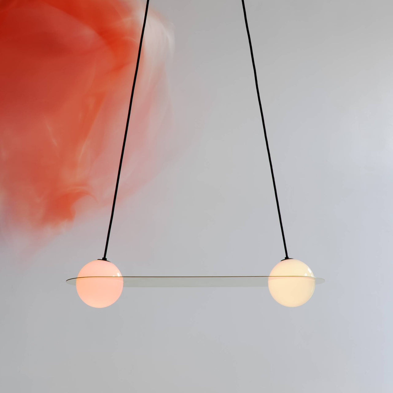 With its pair of handblown opaline globes set in a round-edged plane of metal, Laurent 03 expands on the collection's geometric leanings. Lambert & Fils' suspension light emits warm diffused light from the dual milky glass forms in a glowing contrast with the metal framework, which comes in polished brass, nickel-plate or several colors of powder-coated aluminum. Offered in a choice of angled- or parallel-mount models, the fixture is handmade at the brand's atelier in Montreal.