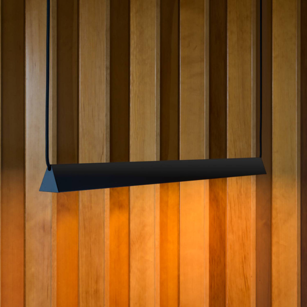 A single extended length, Mile 04,departs from the 90-degree pivot that characterizes the rest of the suspension lamp series and emits useful downward-directed lighting. Starting with a computer grid model, Canadian designer Guillaume Sasseville transformed the series' geometric origins in a sleek powder-coated or polished aluminum body. With a weightless air suspended on its thin wires and powered by linear LED technology, the light is completely handmade at Lambert & Fils Montreal atelier.