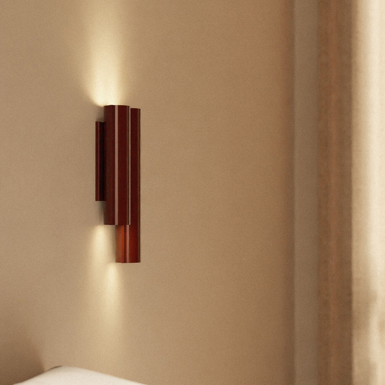 The Silo 2WM Wall Light features a dual-cylinder structure made from custom aluminum extrusions, available in 10 finishes. Drawing inspiration from brutalist architecture, the design evokes the look of concrete towers and metallic wind instruments. The fixture offers both uplight and downlight configurations, providing various illumination options to suit different lighting needs.