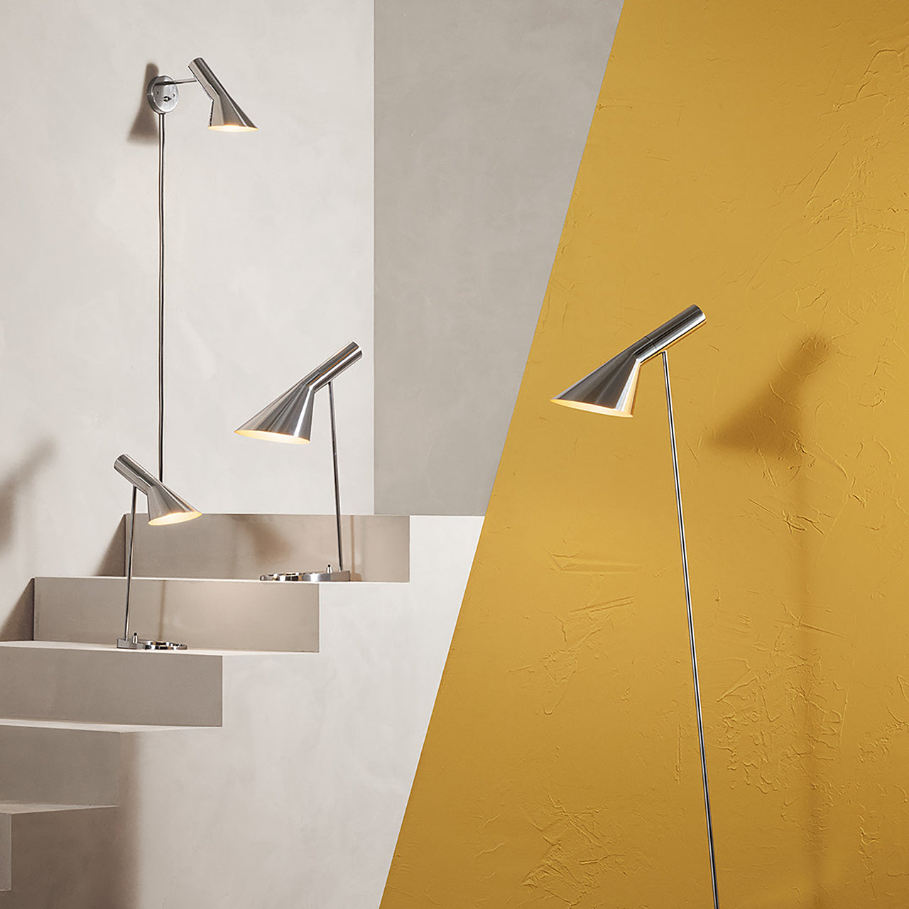 The AJ Table Lamp is one of Arne Jacobsen's most iconic designs, originally created in 1957 for the SAS Royal Hotel in Copenhagen. This lamp is celebrated for its clean, minimalist lines. The adjustable shade allows for precise control of light distribution, making it ideal for reading or desk work. The AJ Table Lamp emits a soft, downward light, enhanced by the white-painted inner shade that ensures glare-free illumination. The design reflects Jacobsen's architectural style, characterized by a blend of straight and curved lines, and is available in a variety of neutral colors, including the classic stainless steel.