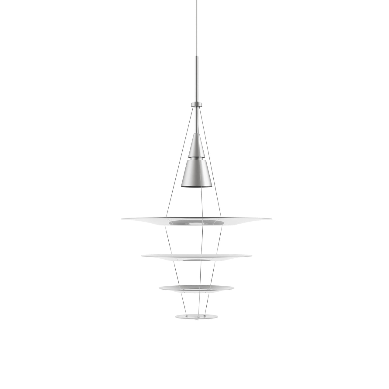 Living up to its name as the pendant’s multiple shades appear to float when viewed illuminated from a distance, Enigma by Japanese designer Shoichi Uchiyama is actually held by ultra-thin wires. In 3 sizes, the fixture comes in a silvery aluminum version or black, creating a serene visual and atmospheric effect as it shapes and channels light.