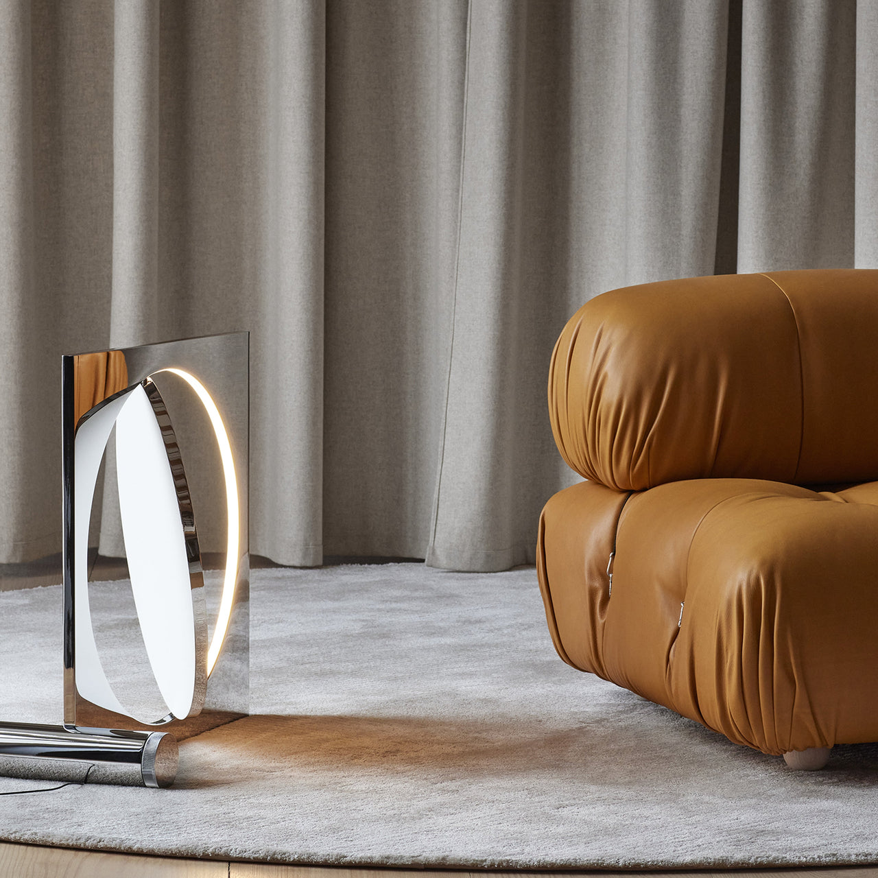The Moonsetter floor lamp by Louis Poulsen stands out with its playful approach to light and reflection. Its 360° rotating disc, one side reflective and the other white, lets you control both the light’s diffusion and the room’s ambiance. Designed by Anne Boysen, it blends sculptural artistry with function, capturing a moonlit feel inspired by her experiments with surfaces and reflections. Each piece is part of a limited run of 100, making it a rare addition to any space, and a testament to Boysen's expertise in spatial design.