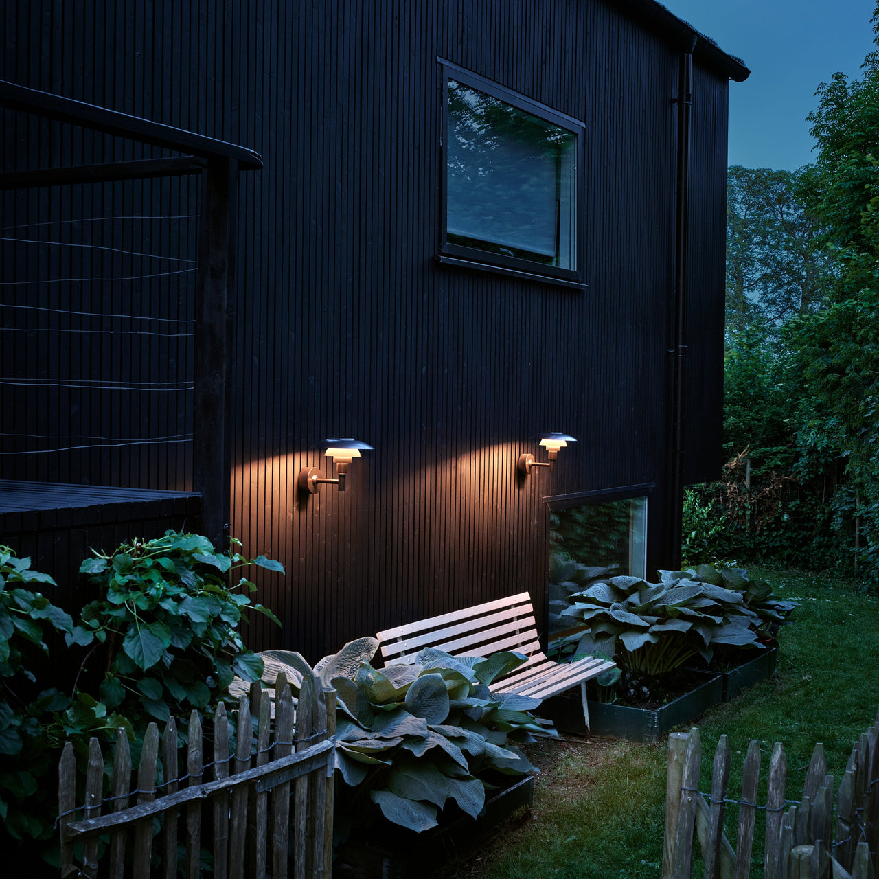 Poul Henningsen unveiled his 3-shade design based on the logarithmic spiral in 1925 and the same system animates PH 3/2½ Wall, proving remarkably even and glare-free lighting outdoors. The fixture embodies the principle of reflection in its triple spun stainless steel shades that direct the majority of the light downwards and have a matte-white painted interior surface to soften and diffuse the illumination.
