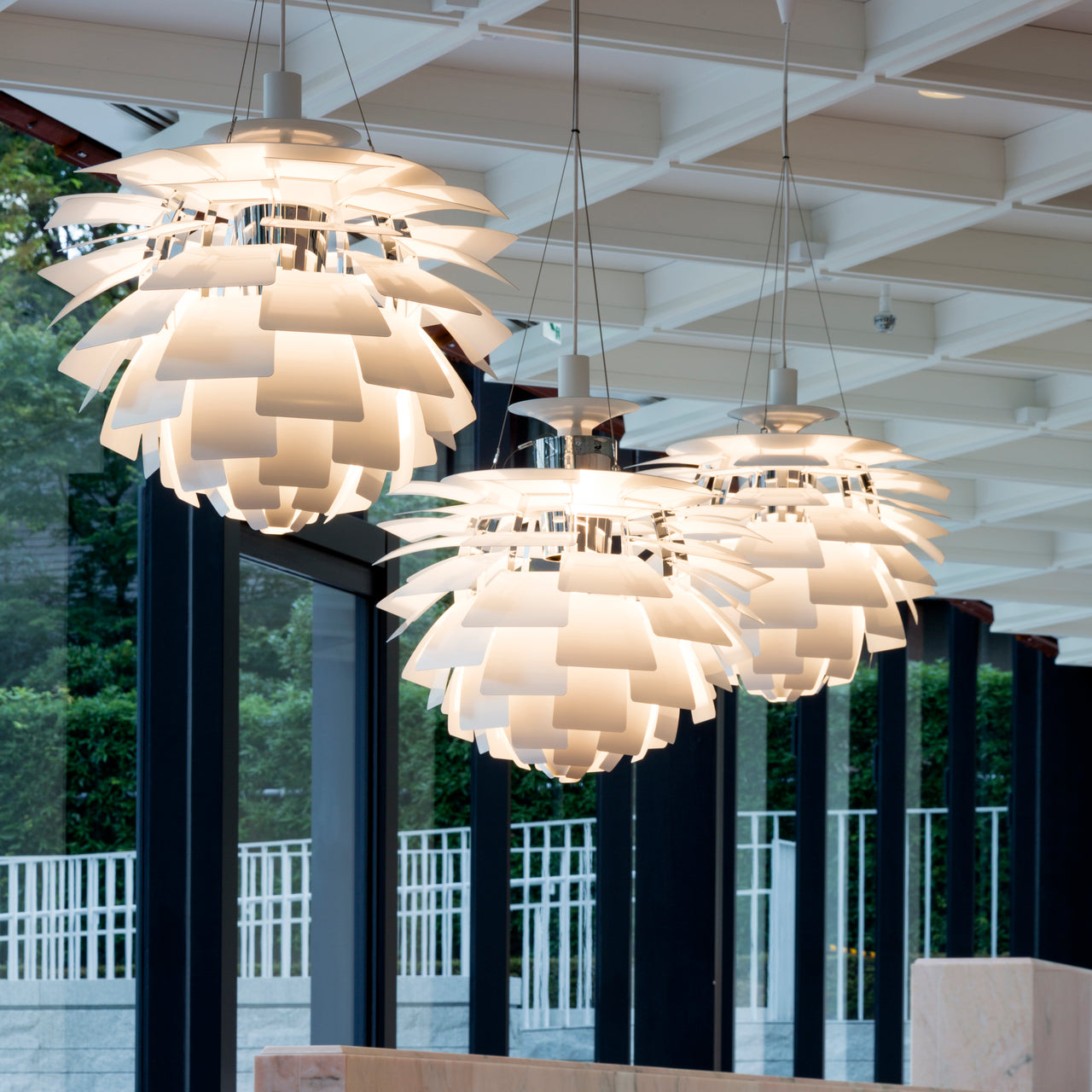 The PH Artichoke Glass Pendant was re-introduced in 2008, but its design roots date back to the 1927-31 PH Septima light. Known for its unique sculptural aesthetic, the PH Artichoke consists of 72 sandblasted glass leaves arranged to diffuse light softly and evenly without glare. This iconic design was originally created for the Langelinie Pavilion restaurant in Copenhagen in 1958, where it still hangs today. The pendant adds an elegant, ice-like transparency to any space, whether illuminated or not.