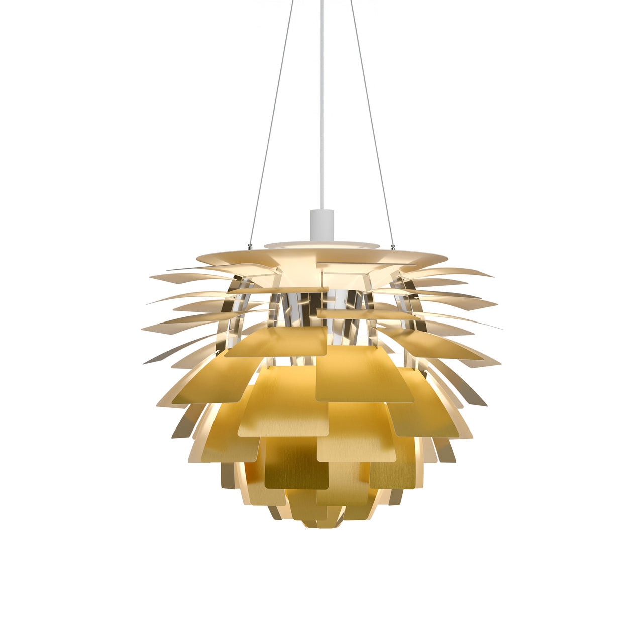 Breathtaking in form, the large version of PH Artichoke, like its sister pendants, features 72 precisely positioned leaves in concentric rows to provide glare-free light from any angle. Still largely made by hand, Poul Henningsen’s sculptural circa-1958 design, now powered by an LED, is offered in a range of metallics or a powder-coated finish.