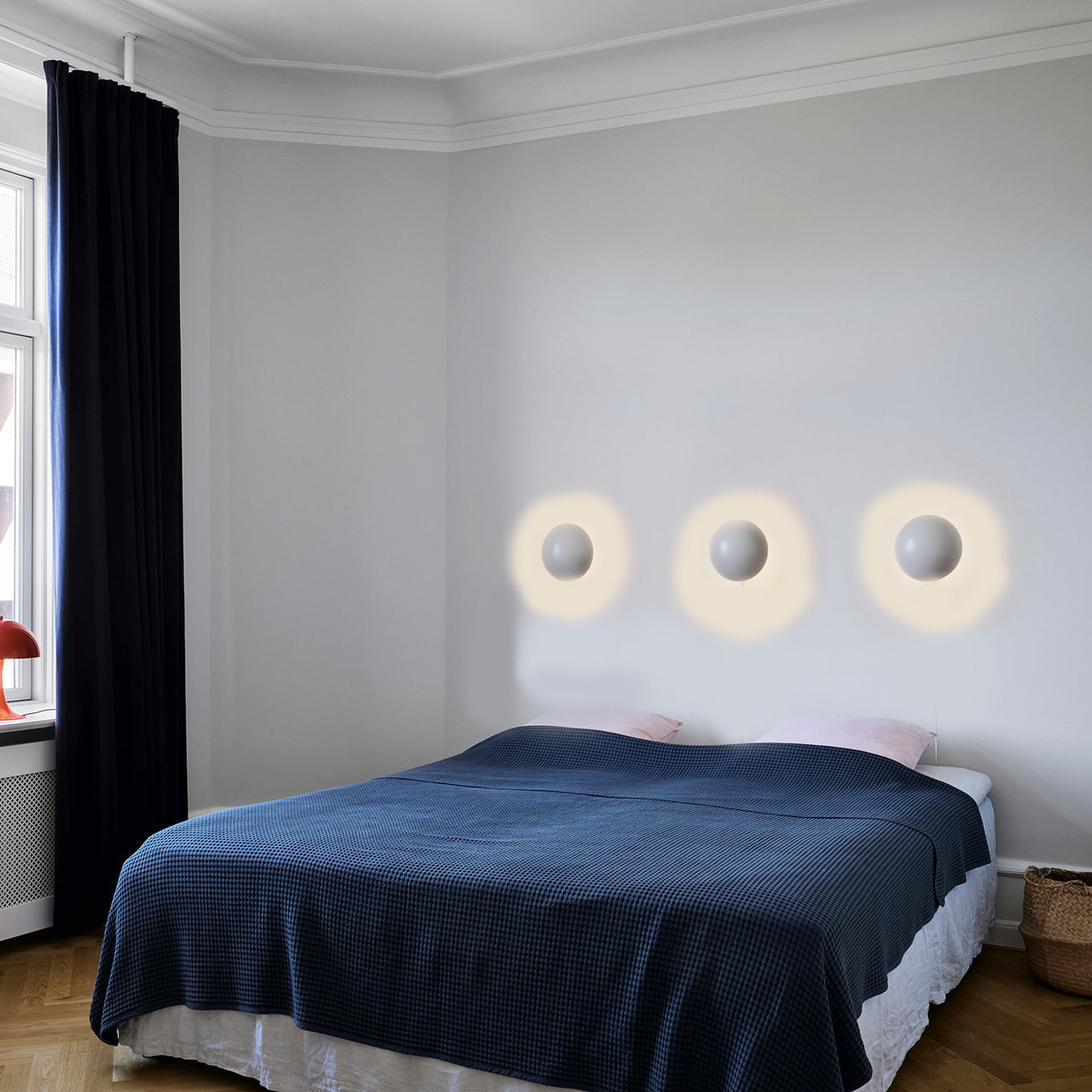 Apropos for the bedroom, foyers and hallways, PH Hat offers soft pleasant illumination reflected off the rose-colored interior of its dome shade. Designed by Poul Henningsen in 1961, the spun-steel fixture has a matte-white painted finish, emitting indirect 100% glare-free light with an understated presence.