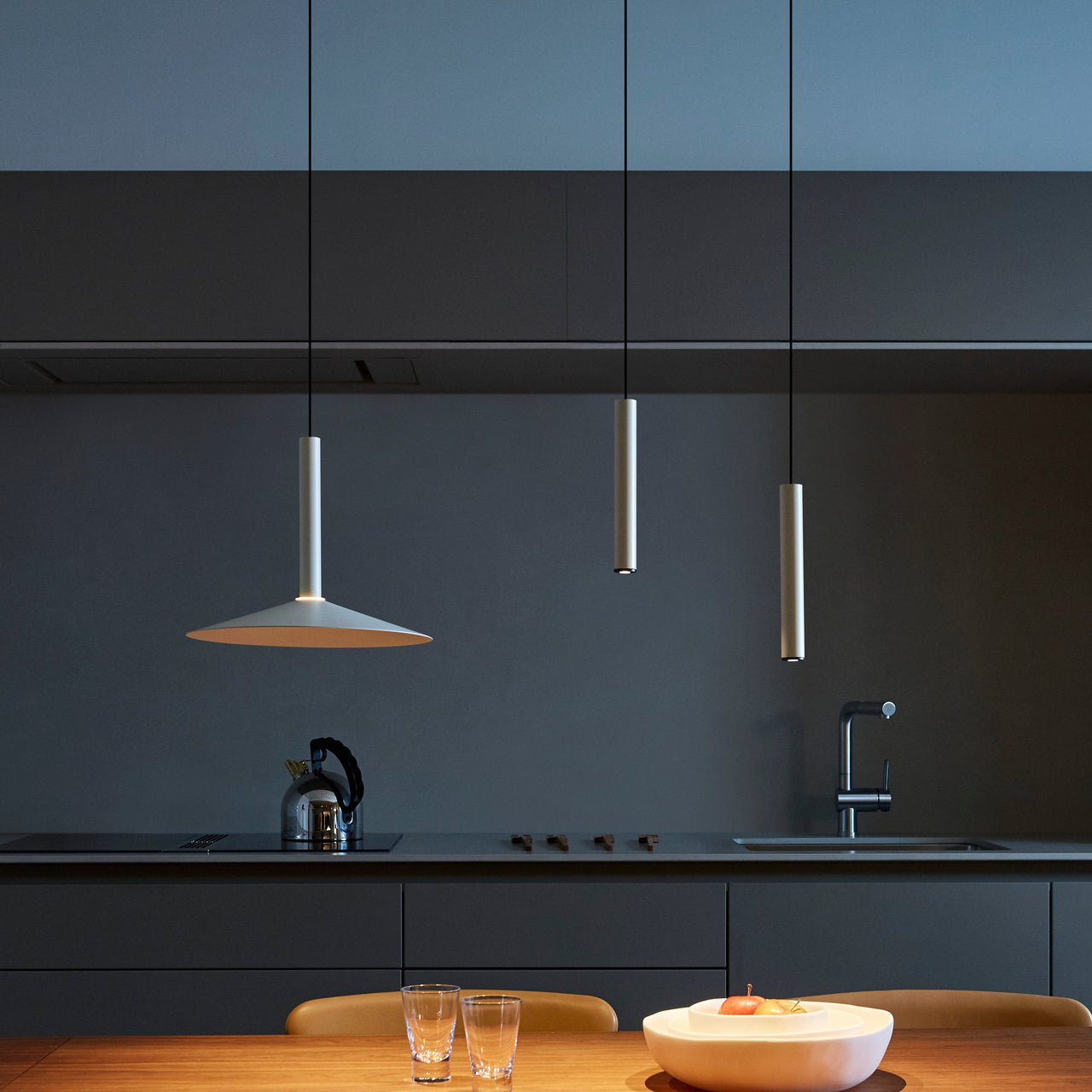 The Milana 8 Pendant Light’s slim cylindrical body, crafted from high-quality materials, is suspended by nearly invisible cords, creating a floating effect. The integrated LED source emits warm, downward-focused light, perfect for intimate settings. It offers a modular lighting solution designed for use individually or in clusters. It blends seamlessly into various interiors in matte black or white finishes. The Milana series includes a counterweight system, allowing vertical and horizontal adjustments for personalized configurations.