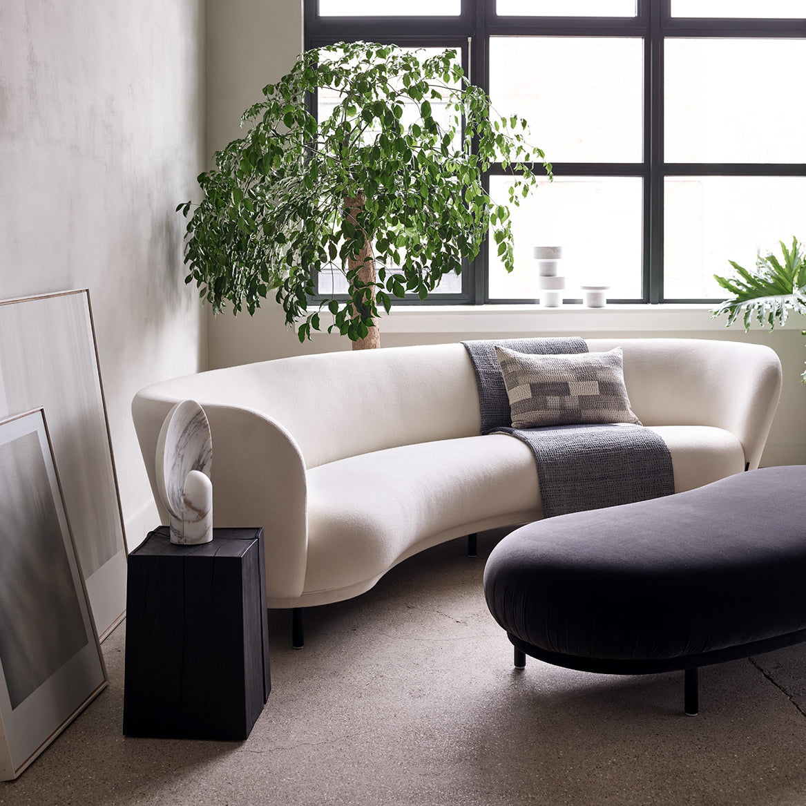 The big enchilada of the Dandy seating collection from Swedish brand Massproductions, this 4 Seater's swerve can can handle a crowd. Completely upholstered front and back in streamlined style, it can be freely placed in any setting, be it residential or commercial. With contrasting natural oak, black-stain or walnut finish legs to contrast with the wide selection of available upholstery selections.