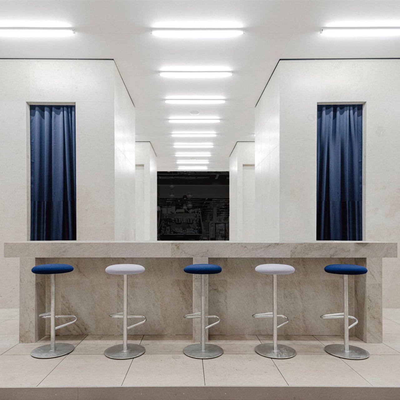 With a sculptural appeal, the Odette Bar + Counter Stool from Massproductions readily adapts to a variety of environs. A comfortable padded seat is offered in a selection of fabric and leather upholstery options. Stool in either bar or counter height, finished in a fine-textured polyester powder coat. Cofounder/designer Chris Martin's pedestal concept once again exudes a clean minimalist style.