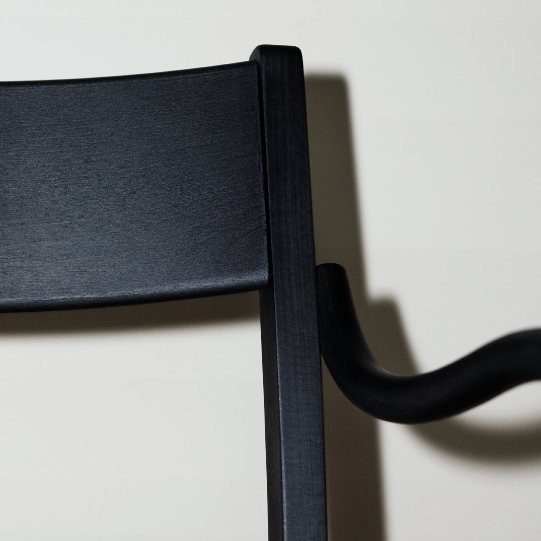 An armchair version of Massproductions' upscaled Waiter XL brings added ease to the dining experience. Named for the servers who inspired it, the Stockholm-based company's signature chair is crafted from FSC-certified, European solid wood. Even the back chair legs are curved inward under the seat to keep passers-by from tripping. At regular chair height but featuring broader seat proportions, this XL definitely encourages lingering at the table.
