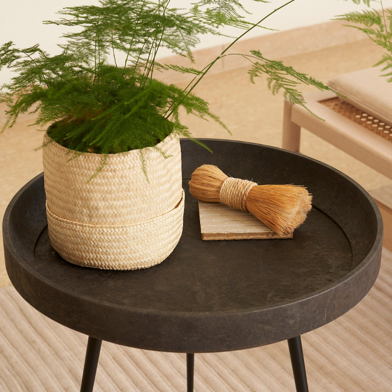 From Mater’s Circular Materials grouping, Bowl Table: Waste Edition employs an innovative technology to produce the material for its sustainable construction. Designer Ayush Kasliwal fashions the rimmed round tabletop in 2 versions: Coffee Waste, which combines upcycled shell leavings mixed with recycled industrial plastic waste, or Wood Waste, which mixes excess sawdust with the recycled plastic. Finally, the steel table legs are made of 20% upcycled metal with a black powder-coated finish.
