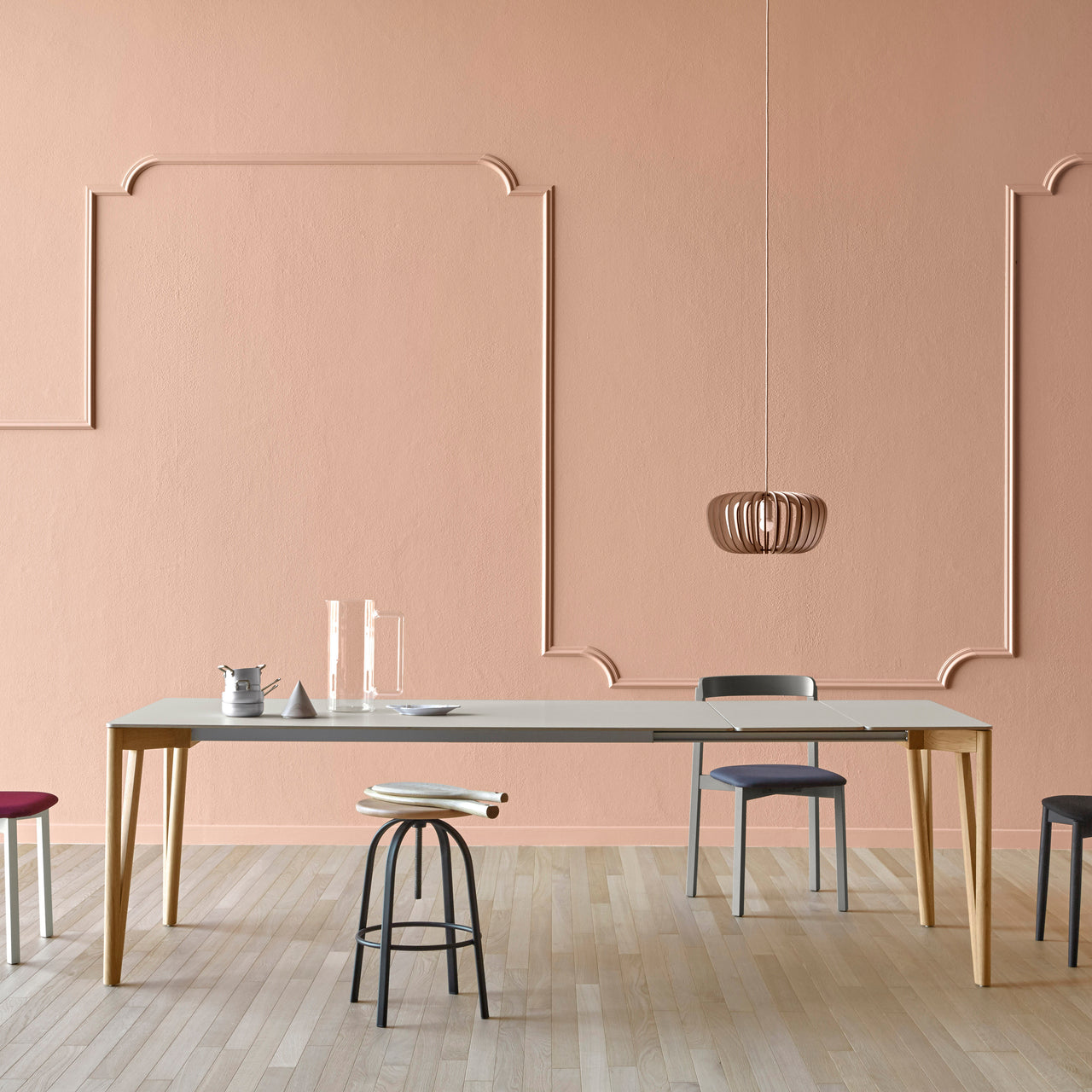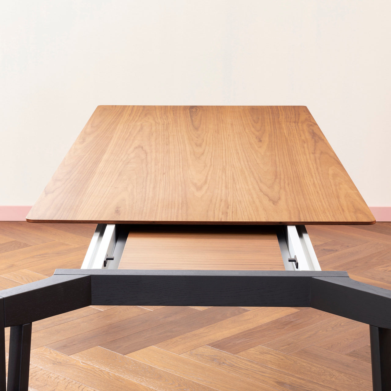 With 2 leaves to expand the table for extra guests, Decapos expansive large version makes a versatile anchor for a dining area. Designers Francesco Beghetto and Antonio Manaigo opt for a linear stylishness, with wood legs in a minimalist V-shape. The numerous tabletop options include glass, a travertine-like ceramic and Fenix laminate as well as rich wood varieties in Canaletto walnut, natural oak or black-stained ash. With a range of complementary wood varieties for the base, the table is adaptable to nearly any decor, superbly crafted in Italy by Miniforms.