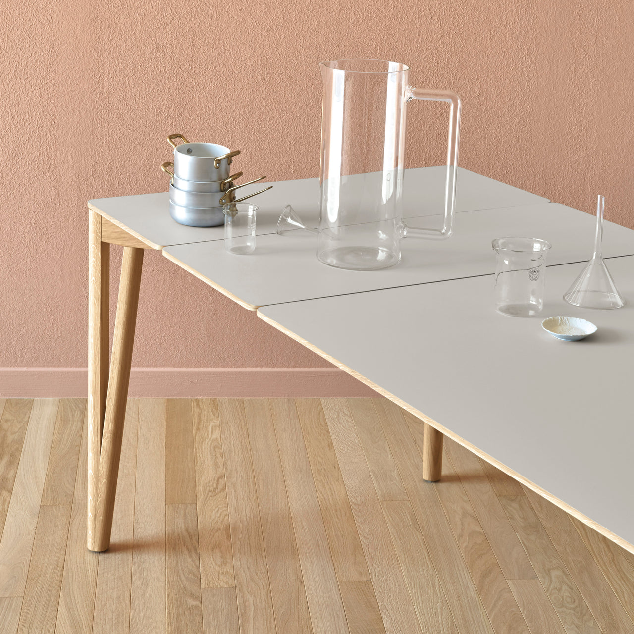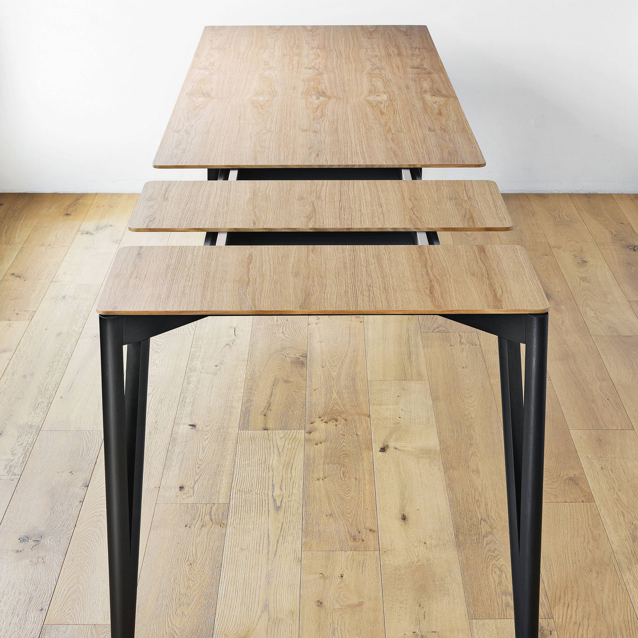 With 2 leaves to expand the table for extra guests, Decapos compact smaller version makes a versatile anchor for limited spaces. Designers Francesco Beghetto and Antonio Manaigo opt for a linear stylishness, with wood legs in a minimalist V-shape. The numerous tabletop options include glass, a travertine-like ceramic and Fenix laminate as well as rich wood varieties in Canaletto walnut, natural oak or black-stained ash. With a range of complementary wood varieties for the base, the table is adaptable to nearly any decor, superbly crafted in Italy by Miniforms.