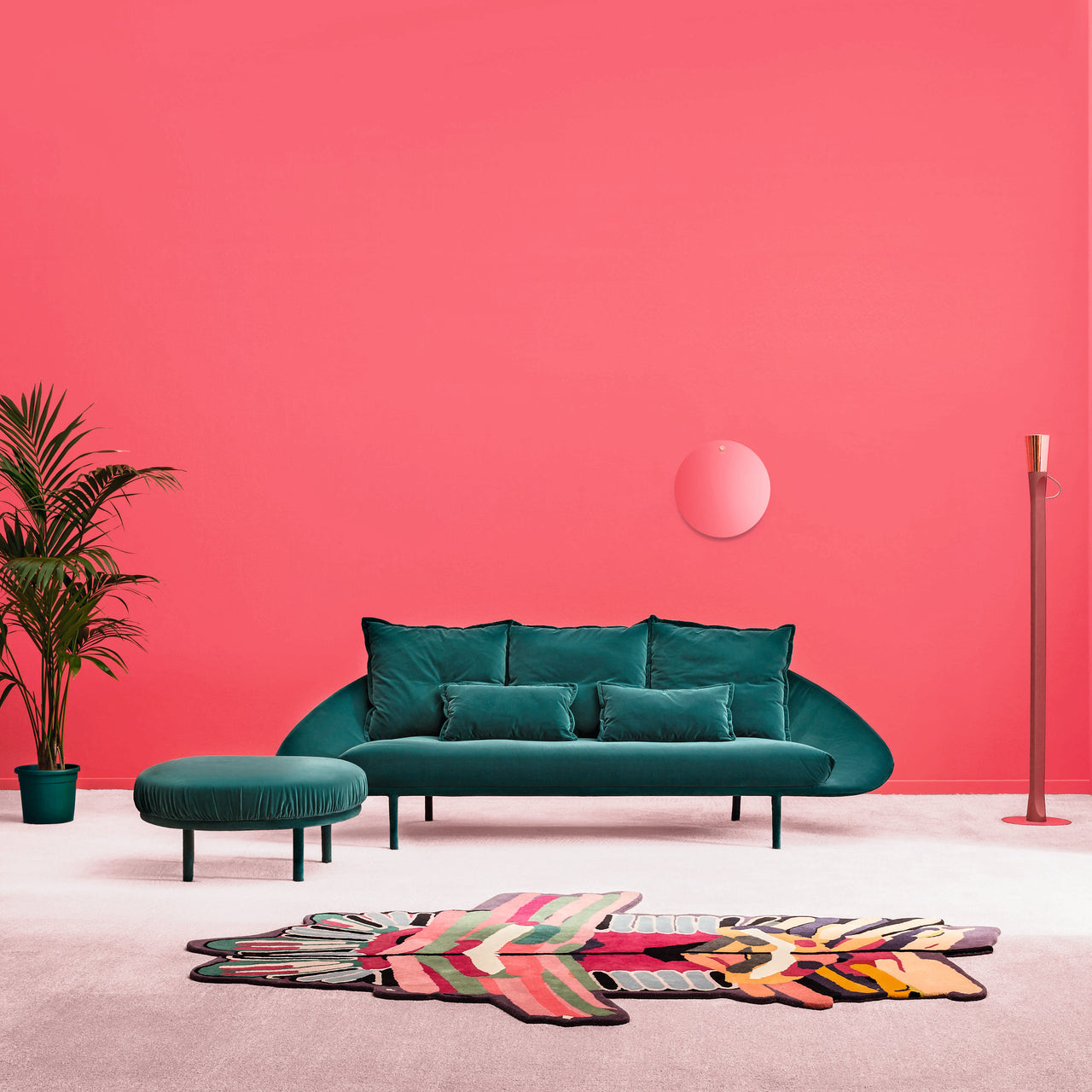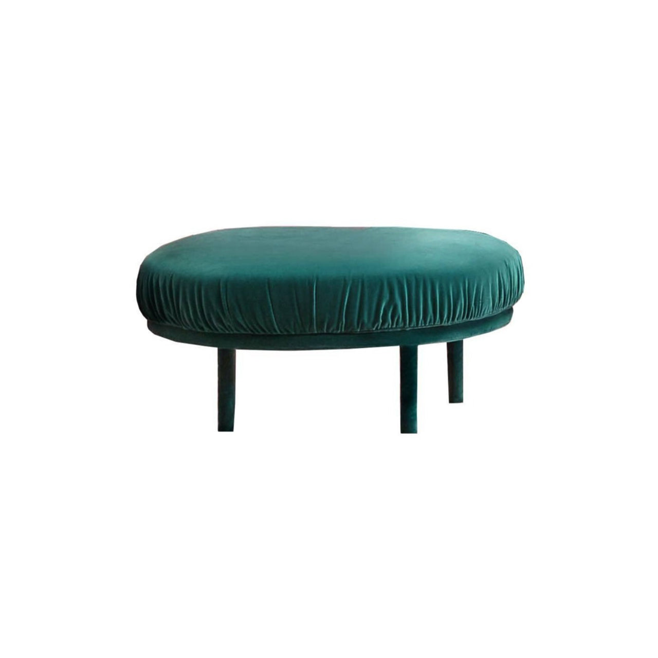 A generous rounded ottoman completes Milan designer Francesco Beghettos expressive Lem seating for Italian maker Miniforms. With a nod to midcentury modern, it features a deeply cushioned surface, making for a perfect companion piece for the collections sofa and armchair or in a mix with other furnishings. And a range of upholstery choices including regal velvets and a sponge textured fabric underscores Lems luxe versatility.