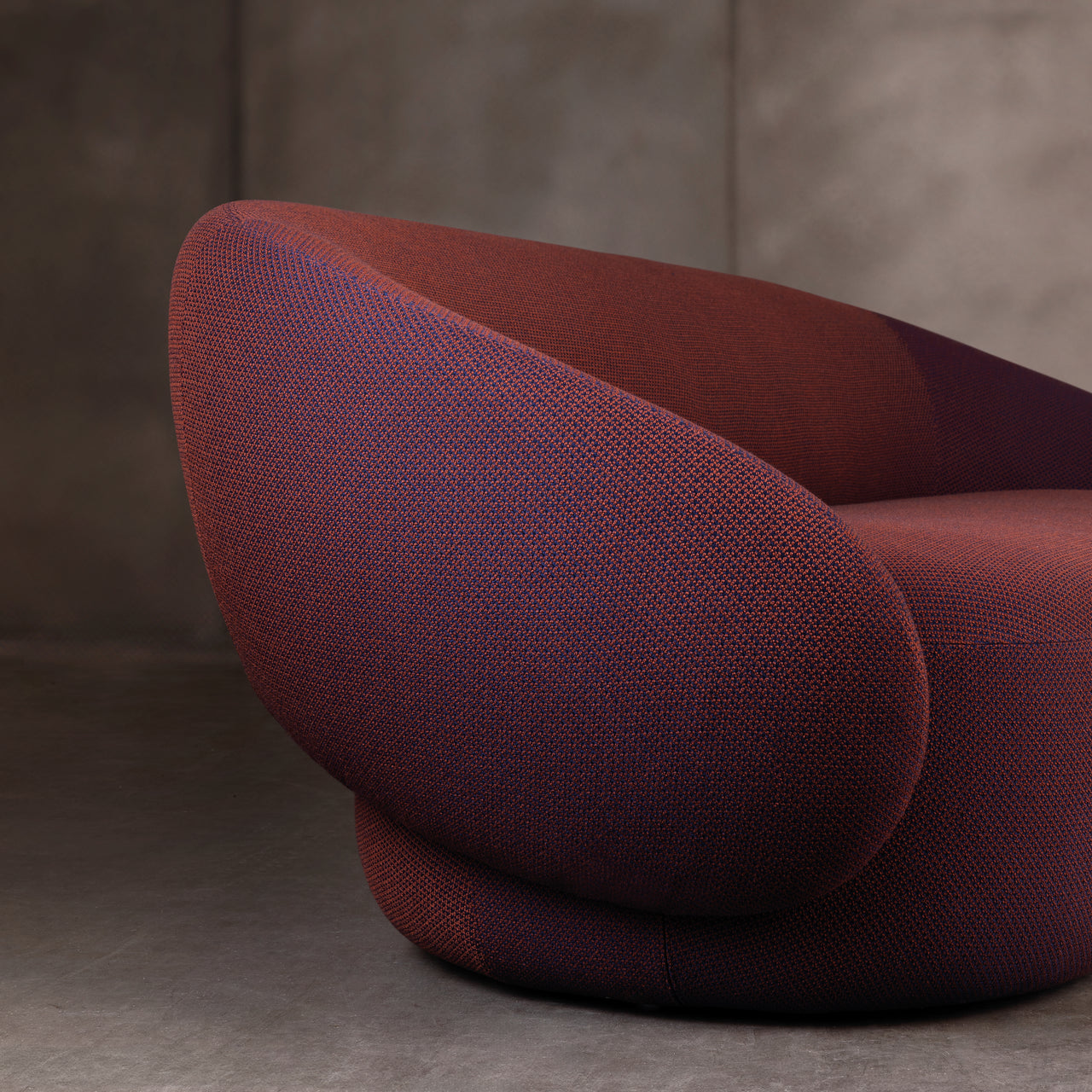The Nebulone Sofa features distinctive drop-shaped armrests that envelop an extended seat, ideal for relaxation alone or with company. Designed by the creative team at E-ggs, this sofa is available in a performance fabric suitable for outdoor use.