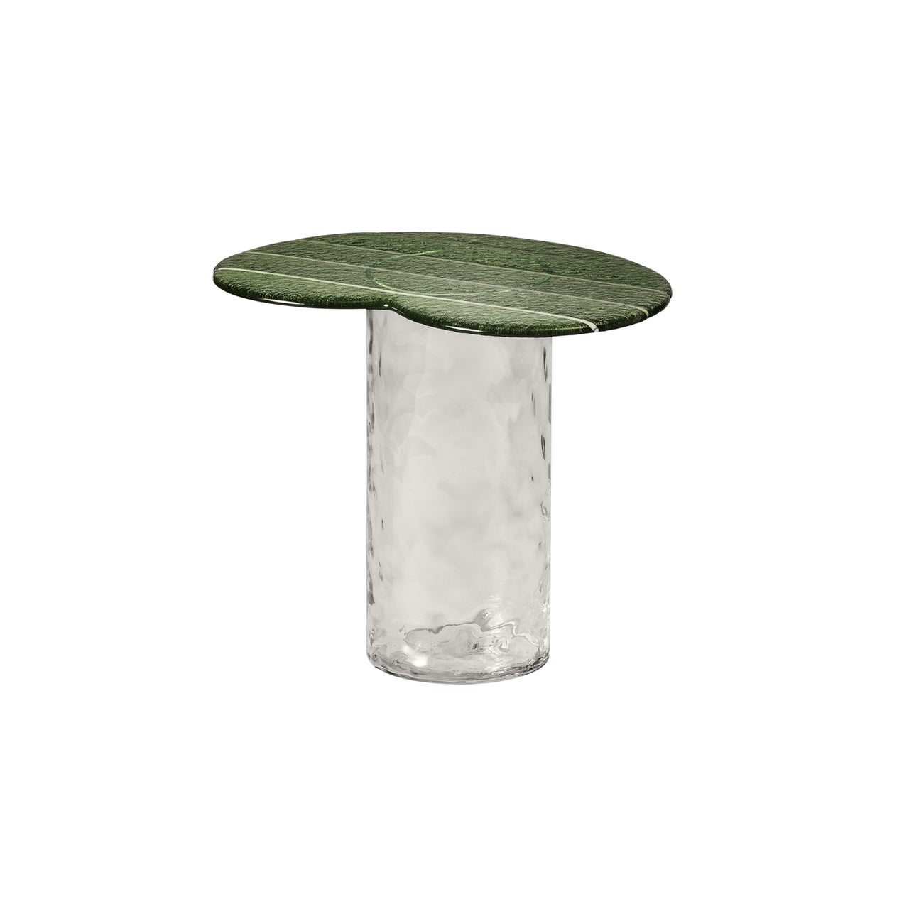 Crafted through a precise four-step glass-pouring process, this side table features a vibrant, gummy-like surface that brings visual depth and character to any setting. The tabletop is made from Murano glass, with each poured layer contributing to its unique form, color, and texture. Available in finishes like Arancio, Blu, Menta, and Cristallo, the design pairs a cylindrical base with an organic or hexagonal top. Designed by Matteo Zorzenoni, celebrated for his material experimentation, the table is suitable for both indoor and outdoor use.