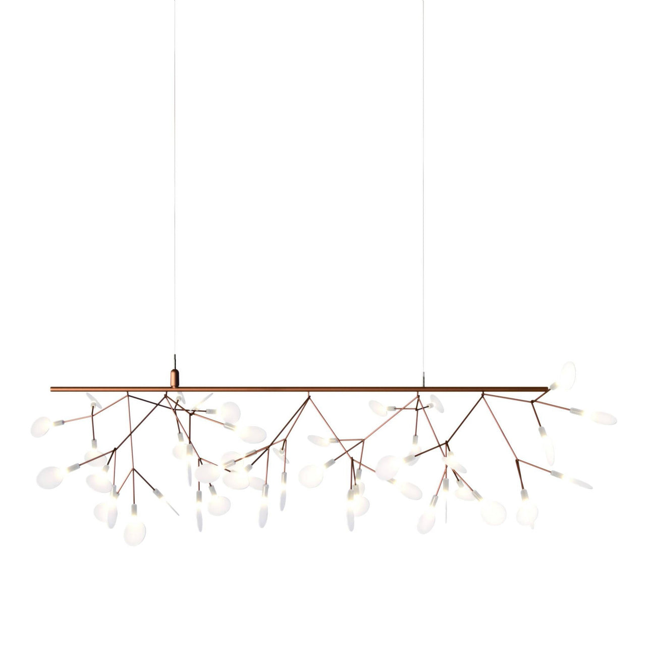A line of blossoms dazzles overhead in the suspended version of Heracleum Endless by Norwegian designer Bertjan Pot. The sparkling radiance of its LED leaves and the depth of its foliage is powered by Moooi’s proprietary Electrosandwich technology, with the lamp’s metal coating acting as a conductor for the light rather than conventional wiring. Heracleum can be deployed as one stunning array or sequenced in multiples for geometric arrangements. Bertjan’s original is included in the collection of the Stedelijk Museum Amsterdam.