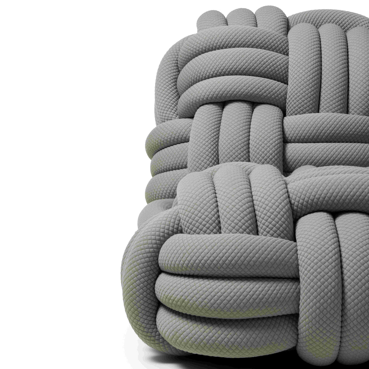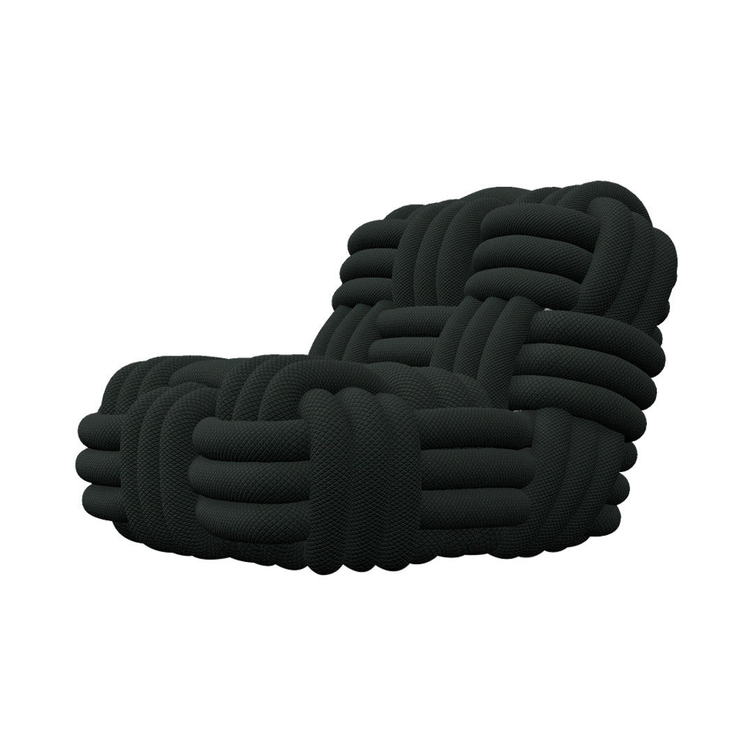 Knitty’s conversation-piece contours are created with jumbo “ropes” inspired by nautical knotting as envisioned by Slovenian designer Nika Zupanc. The over-scaled lounge chair offers remarkable softness and tactile luxury via its knitted upholstery fabric in a palette of refined colors, perfect for curling up with a book, binging on TV or simply daydreaming.