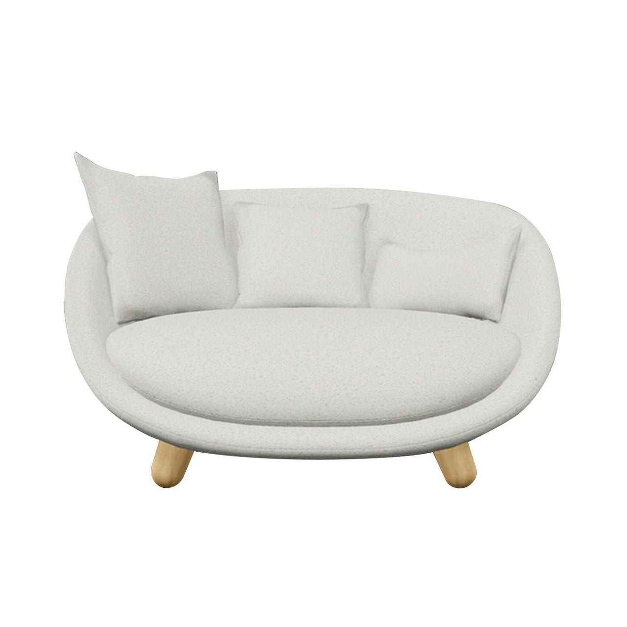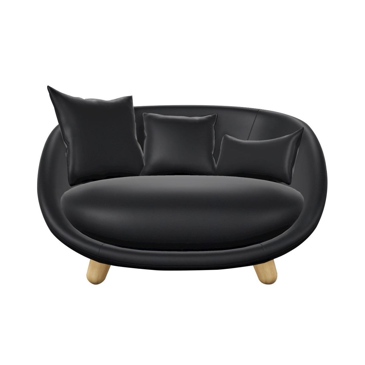 Peripatetic Dutch designer Marcel Wanders gets flirty with Love, an embracingly shaped sofa built for 2. Its rounded form is built to stand the test of time, with a metal frame covered in molded foam and accented with thickish ash wood legs in a choice of finishes. With a single seat cushion and trio of back pillows, the seating is available in a host of premium fabric or leather upholstery choices to cozy up with.