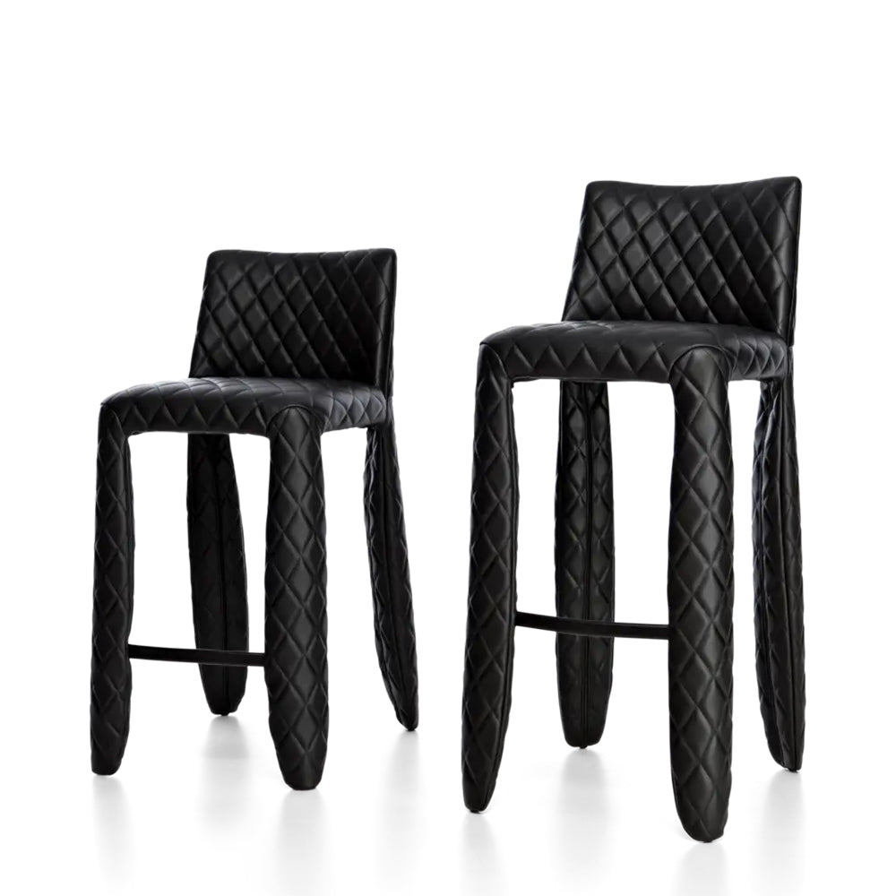 Straight out of Dutch designer Marcel Wanders’ dreams, his Monster family expands with a long-legged version clad in a puffy quilted covering. Available in either bar or counter height, the stool brings an alluring touch of the macabre to any household setting. At heart, this Monster is really a softie, providing extended comfort as well as a highly personalized expression with the range frightfully upholstery choices.