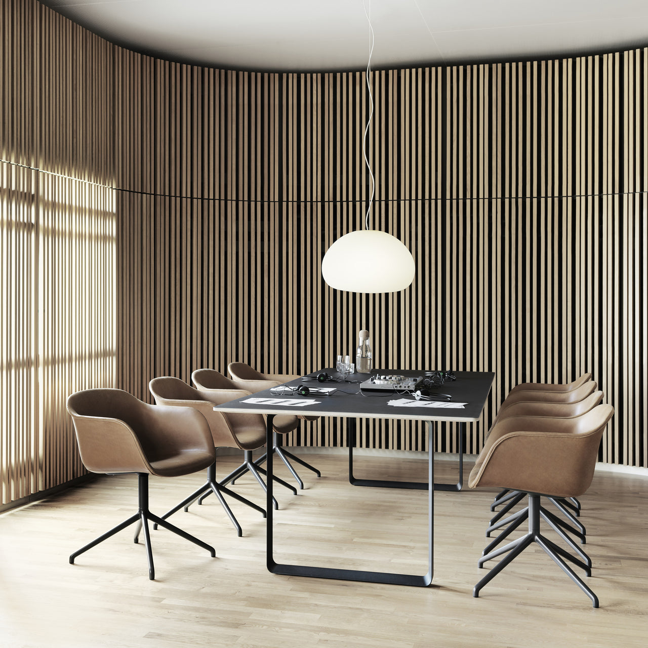 There’s big and then there’s Muuto’s expansive 70/70 Table supersized to the limit in its 3 largest iterations. TAF Studio designers juxtapose an angular base in light but robust cast aluminum with the strikingly ultra-thin tabletop. Equally suited for dinner for a crowd, coworking at home or office or for gathering in hospitality spaces, it’s available surfaced in oak veneer, matte linoleum or hard-wearing laminate.