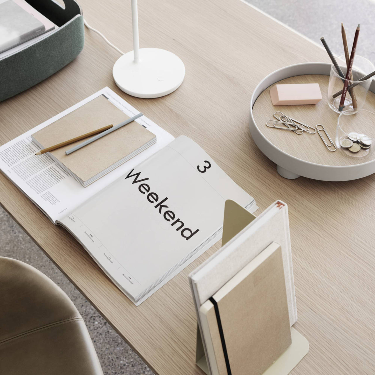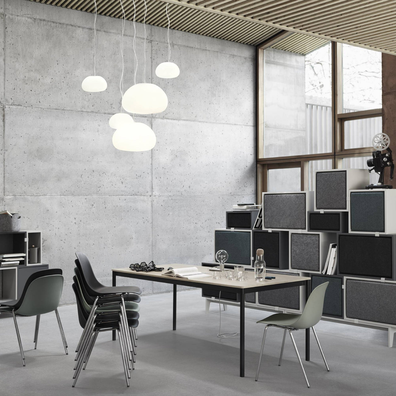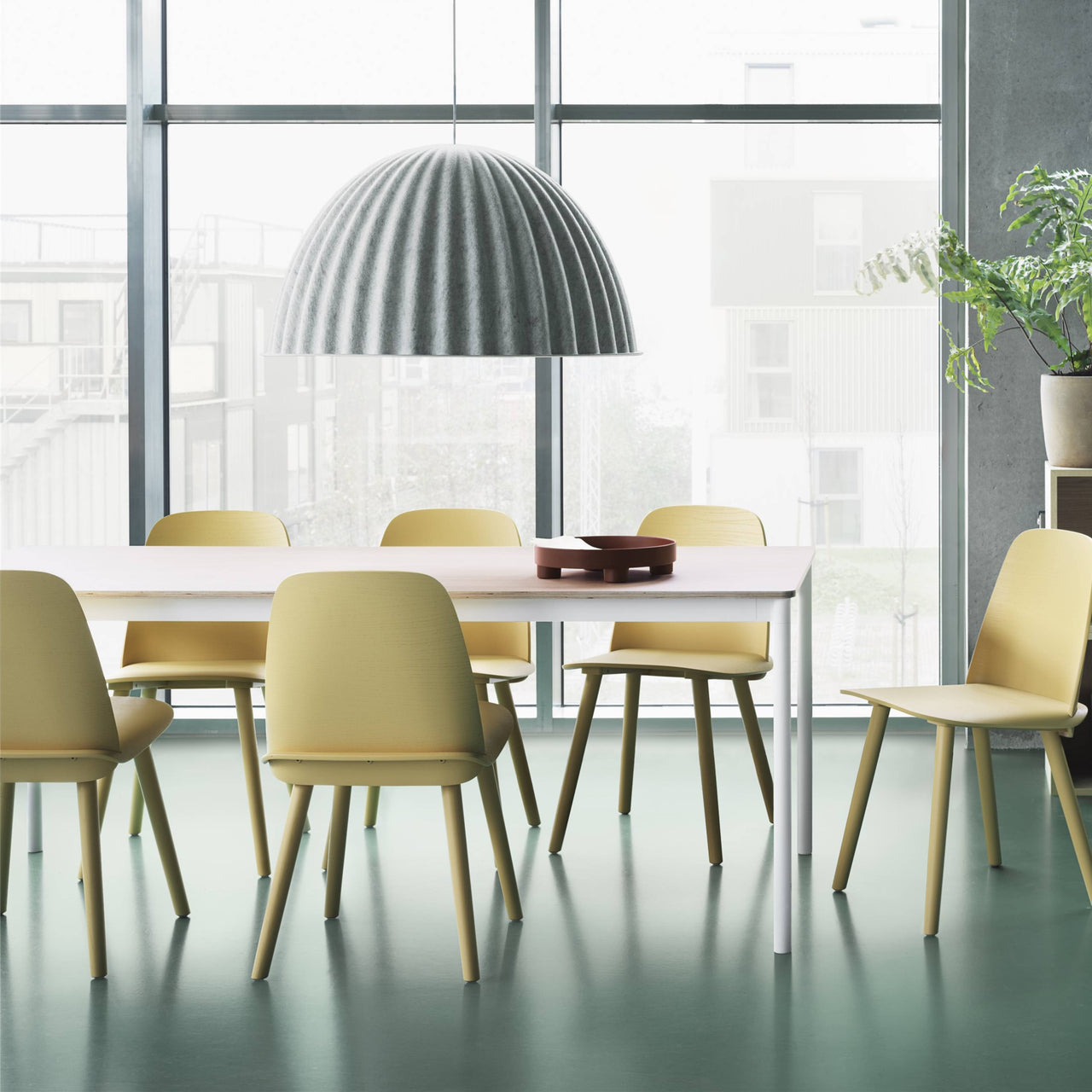 Care: clean with cloth wet with warm-hot water and mild soap. Avoid strong chemicals. With linoleum tabletops, Muuto recommends linoleum polish 2-3 times a year.