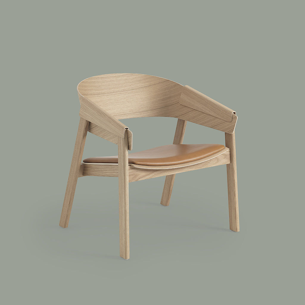 Within the legacy of Scandinavian style, designer Thomas Bentzen turns a new page with the innovative use of wood layering in his upholstered lounge chair. Featuring a capacious padded seat sheathed in textiles from Kvadrat or Refine leather, Cover still takes up comparatively little space in a room. Thomas creates a striking profile with the expressively curved shell, wooden armrests and slightly dipped seat, with the wood folded over the chair's legs and backrest. The chair frame is crafted in solid beechwood, with the backrest either in natural oak or in ash for the colored version.