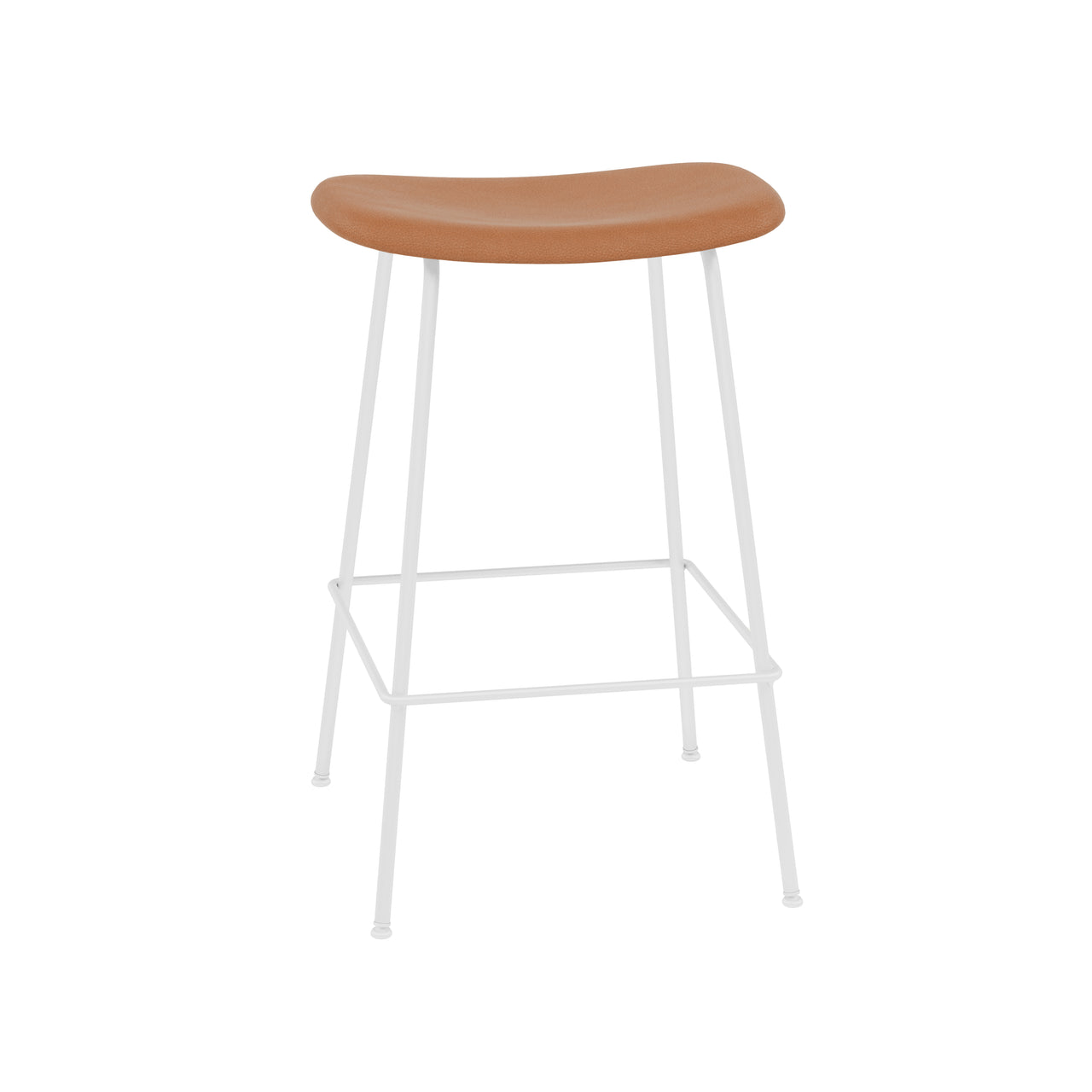 Rich leather or a premium textile provides a luxe overlay for the molded seat of Danish brand Muuto's upholstered barstool from its signature Fiber series. Designers Iskos-Berlin have updated the notion of classic Scandinavian shell seating with an inventive plastic composite made with 25 percent wood fibers. In either bar or counter height, Fiber's tube base crafted in powder-coated steel is available in black, white or grey to harmonize with the chosen upholstery.