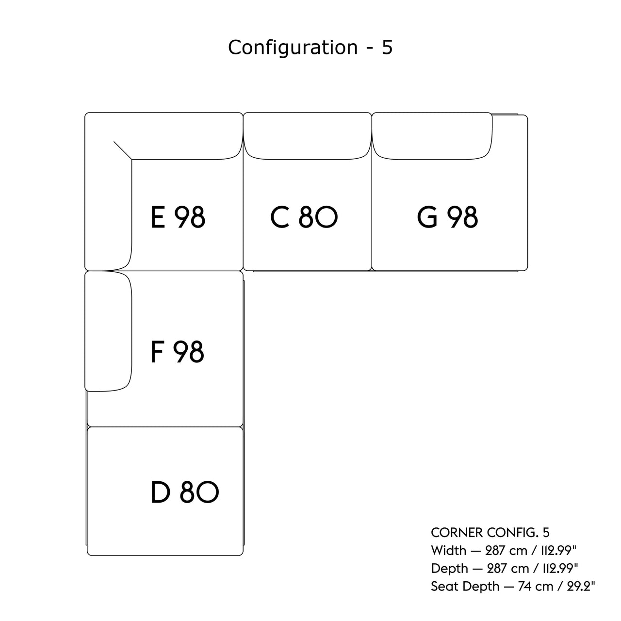 - Configuration: 1 - 5: 27.6" h x 113" w x 113" d (70x287x287cm)
