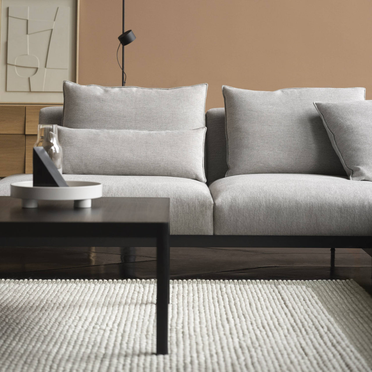 With In Situ, designers Anderssen & Voll say they meld "the grandeur of traditional Italian sofas with the refined simplicity of Scandinavian design." Working with Copenhagen brand Muuto, the Norwegian studio arrived at a distinctive modular scheme, with 30 prearranged configurations based on the 9 different seating styles and 2 loose cushions. A powder-coated steel frame runs along the seat and back of the sofa and visually unifies the separate units. In Situ's crisp profile and deeply comfortable proportions are realized with wood construction and foam, wadding and fiberball fill.