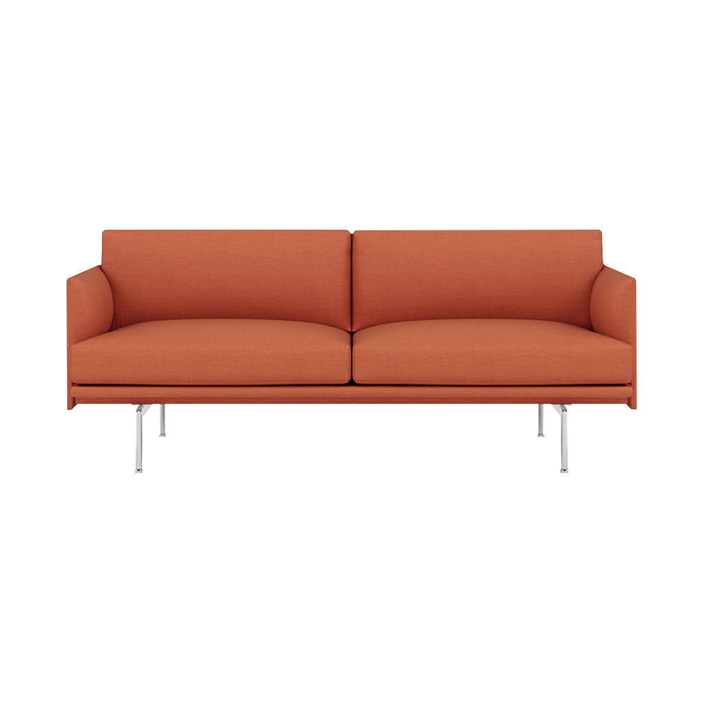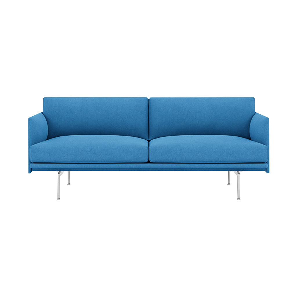 Outline evolves from classic Scandinavian design sofas of the '60s, with a clean profile on the outside and luxuriantly deep seat and back cushioning on the inside. Elegant yet timeless, the 2-seater adds a compact model to designer Anderssen & Voll's distinctively architectural series, with its squared-off form eased on slender powder-coated or polished aluminum legs. Constructed with plywood and steel, the seating is layered with foam beneath the chosen textile or leather and cushions are hand-sewn and filled with premium cold foam.