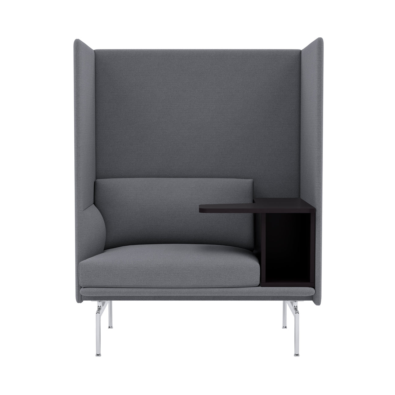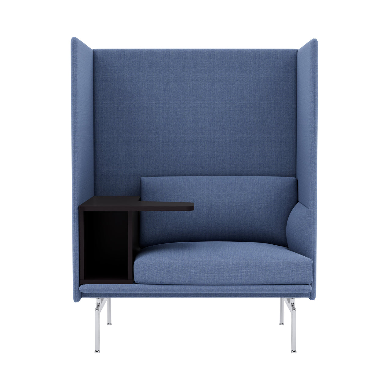 Providing acoustic and spatial shelter, Muuto’s refined Outline series adds Highback Work, combining expansive seated comfort with a desk surface-storage cubby on a trim base. Options include left or right orientation and a cable outlet for easy power access, making the chair a complete task-oriented environment for open-plan offices or hospitality settings.