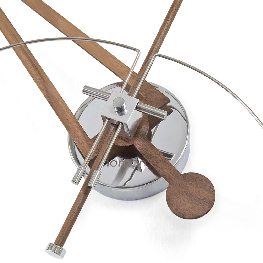 Cris brings a captivating asymmetry to Nomon’s minimalist collection, with an outlined hour hand in walnut and a spear-like minute hand in a choice of colors with a wooden tip. Handmade in Spain, the wall clock’s receding ring structure is available in chromed steel or polished brass along with the center case which holds its German-origin quartz movement.