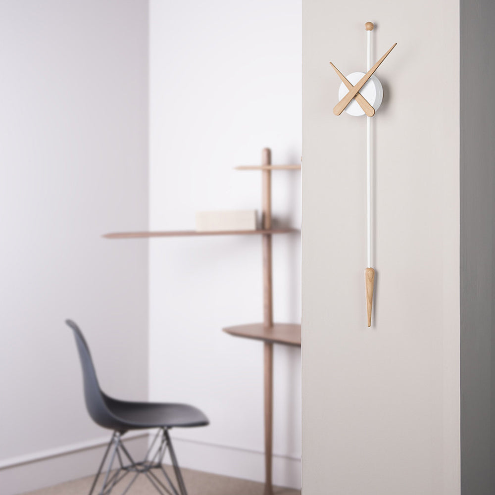 Nomon pays homage to the classic pendulum clock with a modernist rethink in Punta. Pointed hands in walnut or oak-finished ash and a matching pendulum play against the clock face in a choice of black or white. Powered by a German-origin precision quartz works, the wall timepiece is a unique handmade piece with attention paid to every detail and is fully manufactured in Spain. A standout in any setting, it's easily installed and does not require an electrical connection.